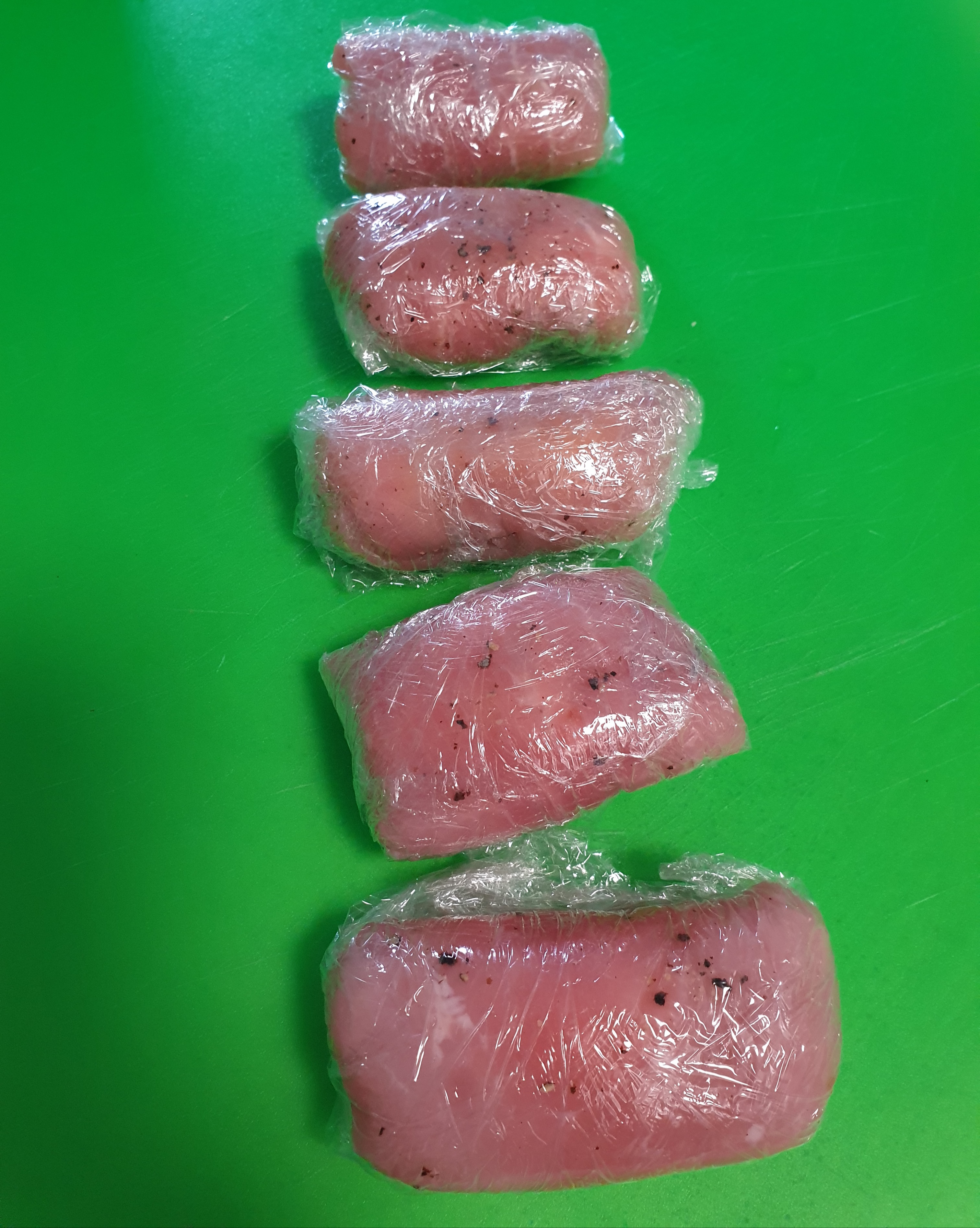 고기를 랩으로 감싸서 모양을 잡아주고