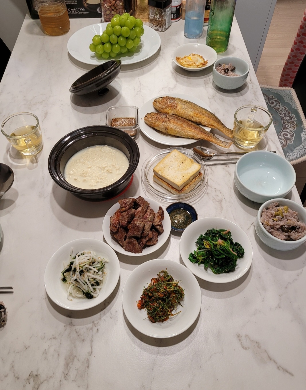 이모, 이모부는 아침 안 드신다면서 우리 먹으라고 다음날 아침도 이렇게 한 상 차려주셨다.