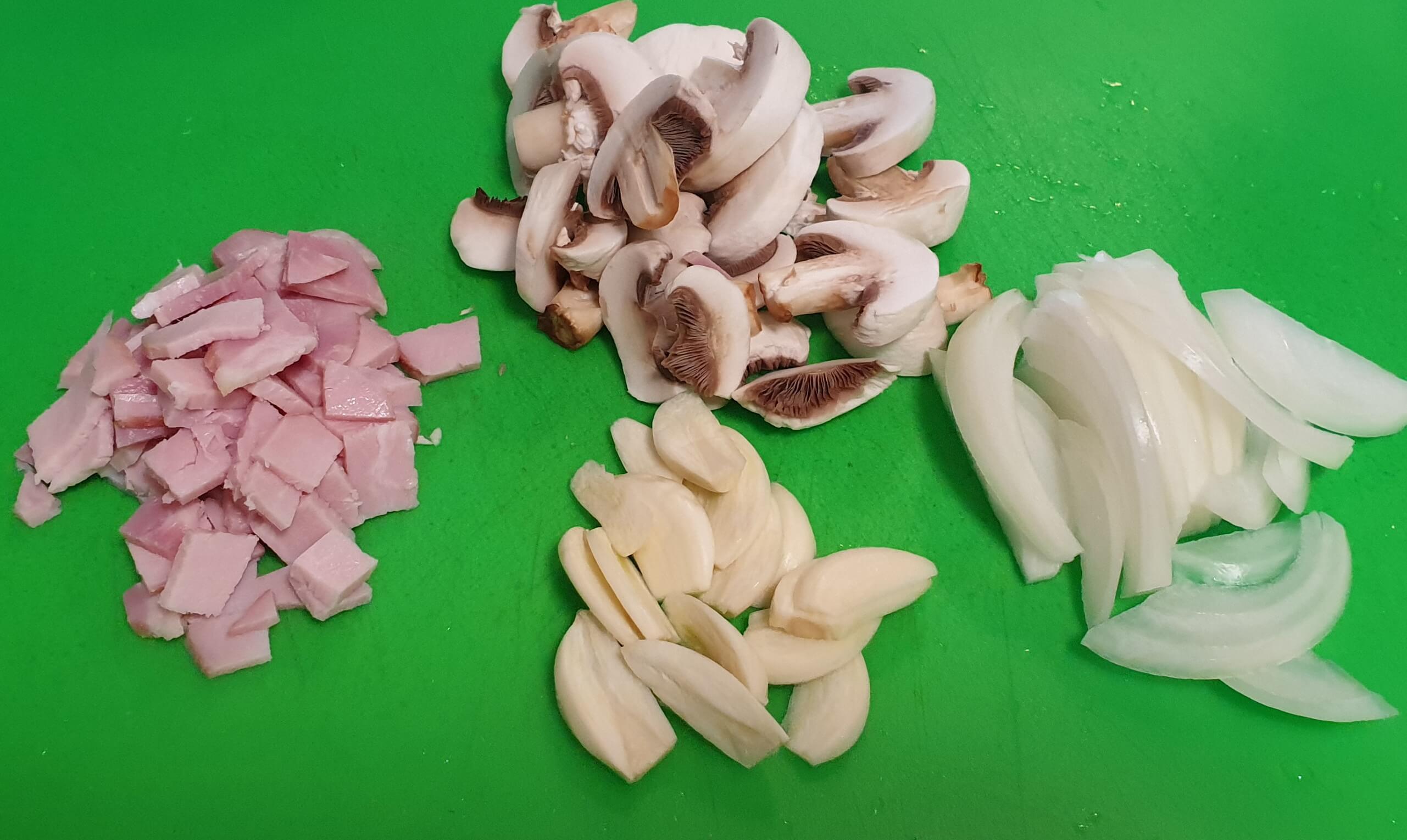 베이컨과 양송이 버섯, 편 마늘(다진 마늘), 양파도 넣을 만큼