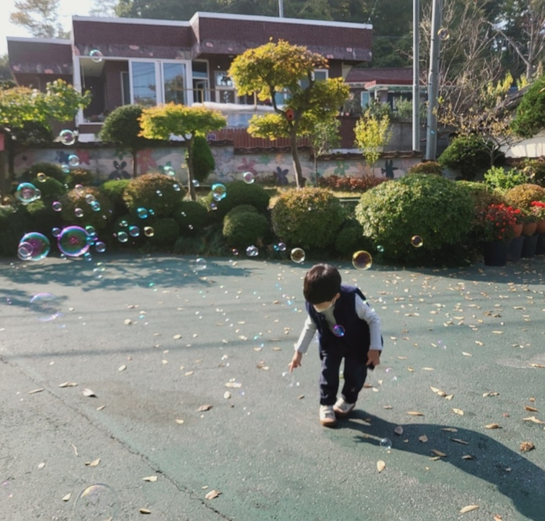 친구들 자는 시간에 선생님이랑 따로 나와서 산책을 하거나 비눗방울 놀이를 하기도 했다.