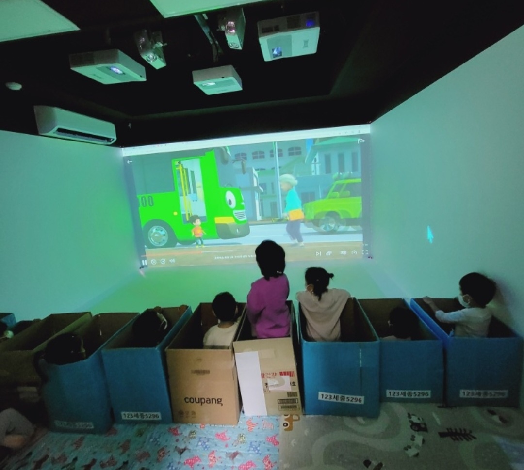직접그린 타요버스에서 친구들과 영화도 보고 하면서 점점 단체생활을 배운다.