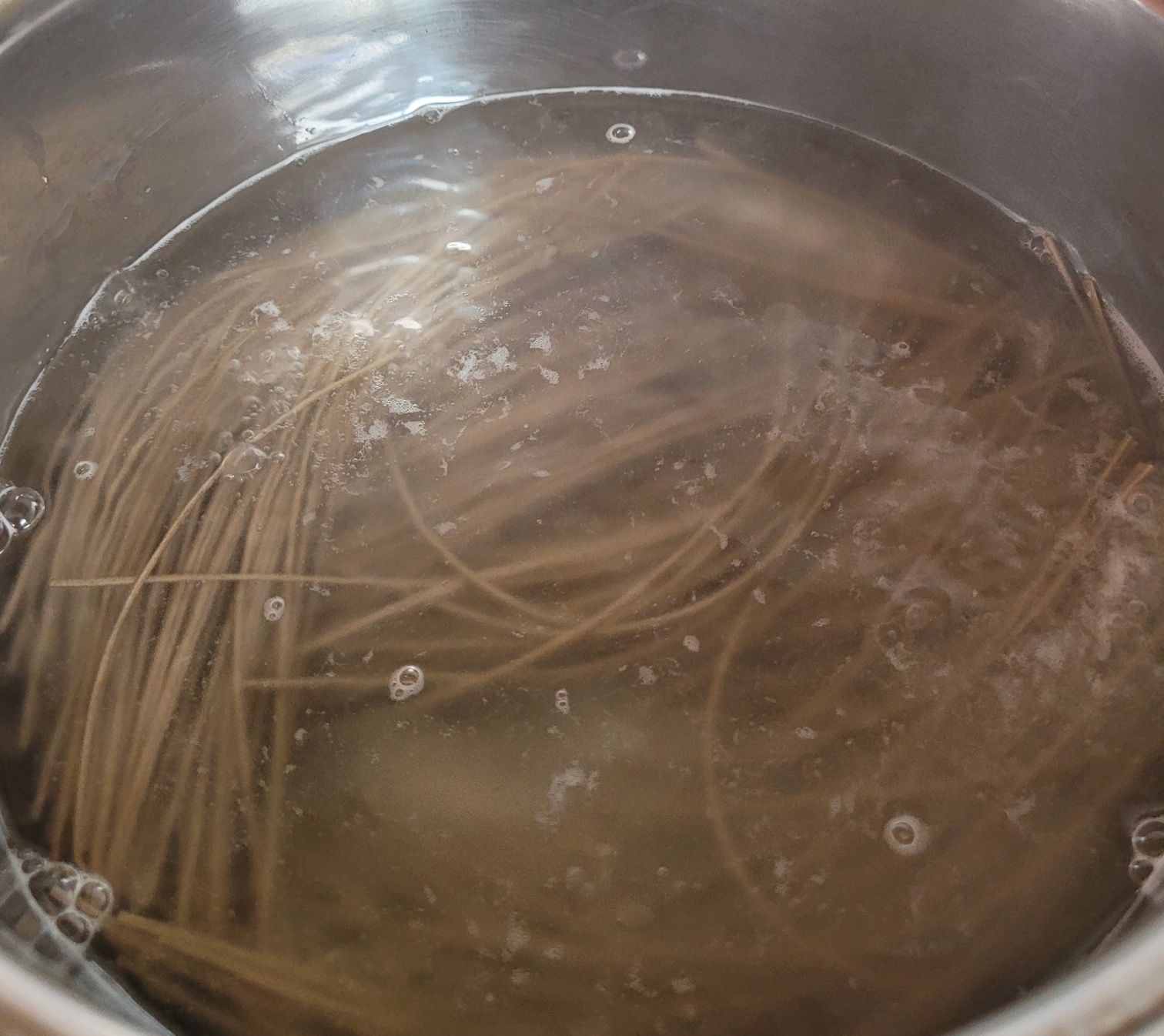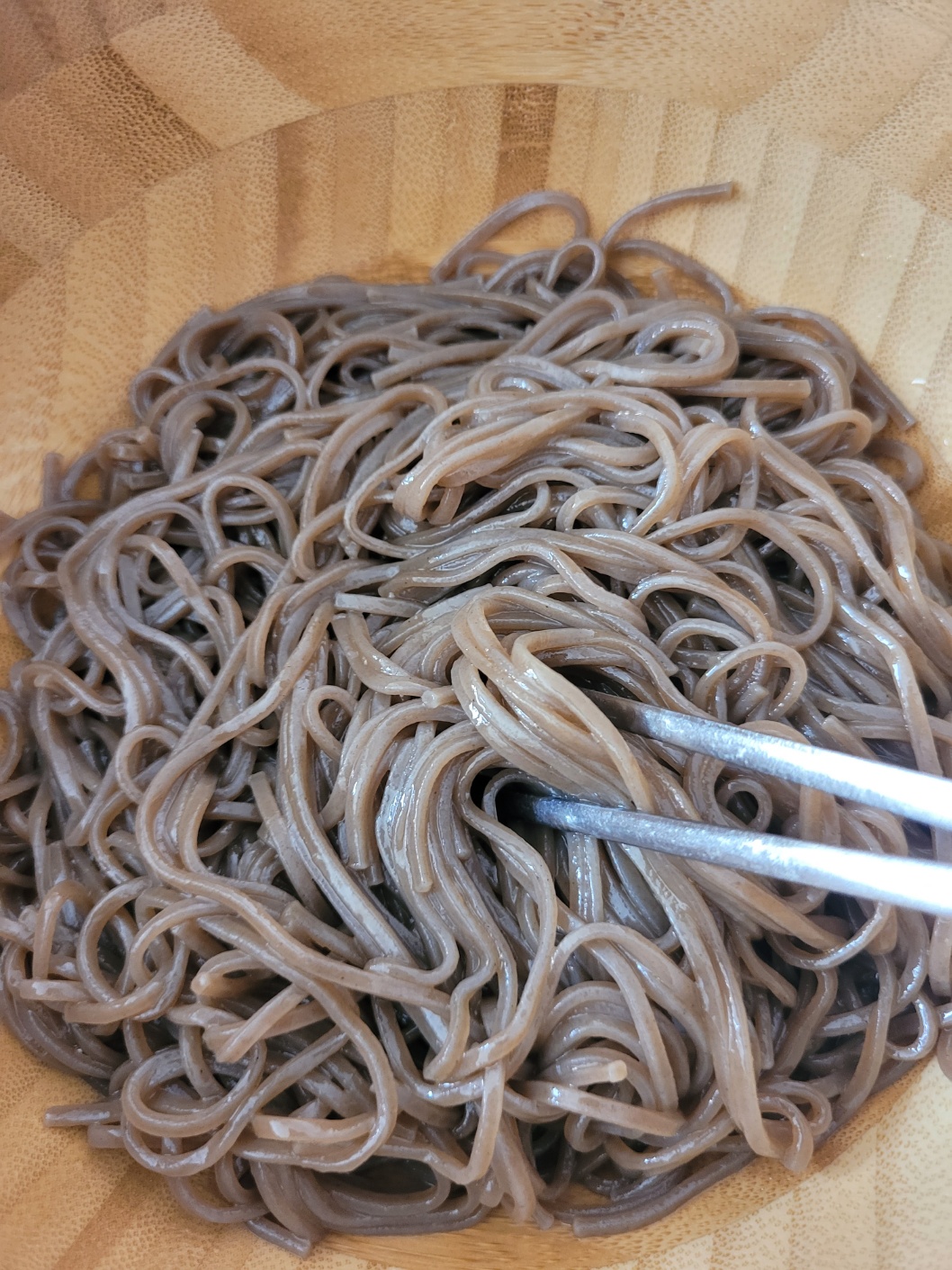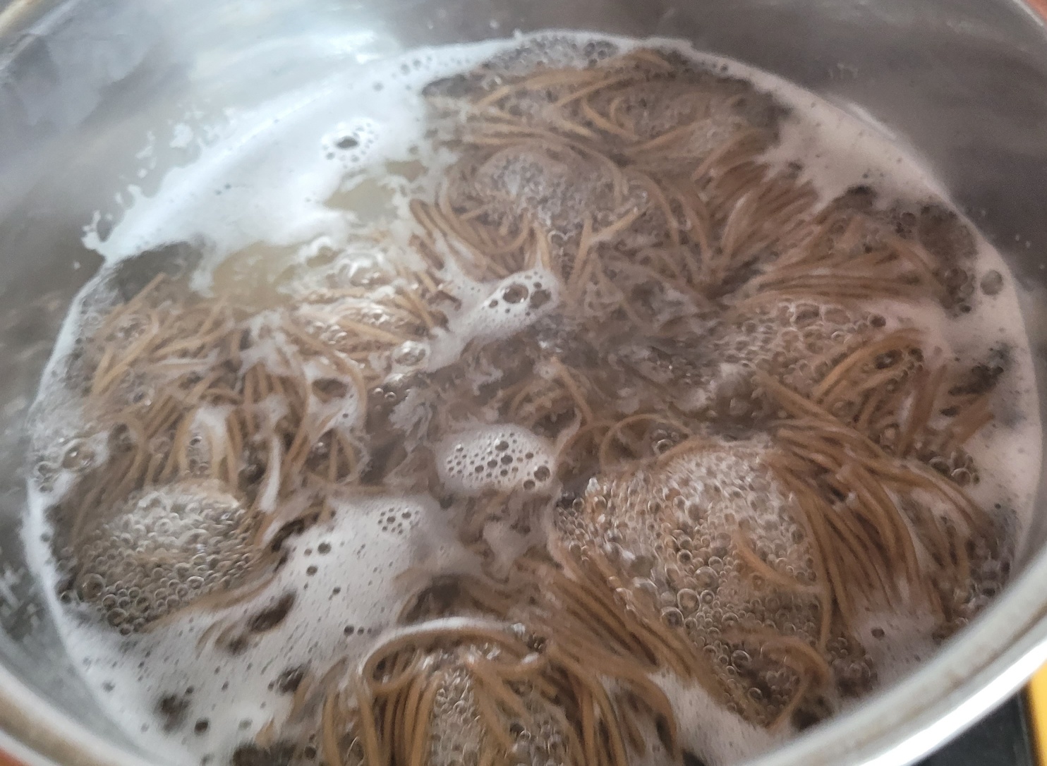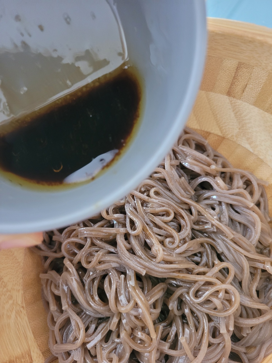 집에 항상 쟁여놓는 메밀국수를 이용해