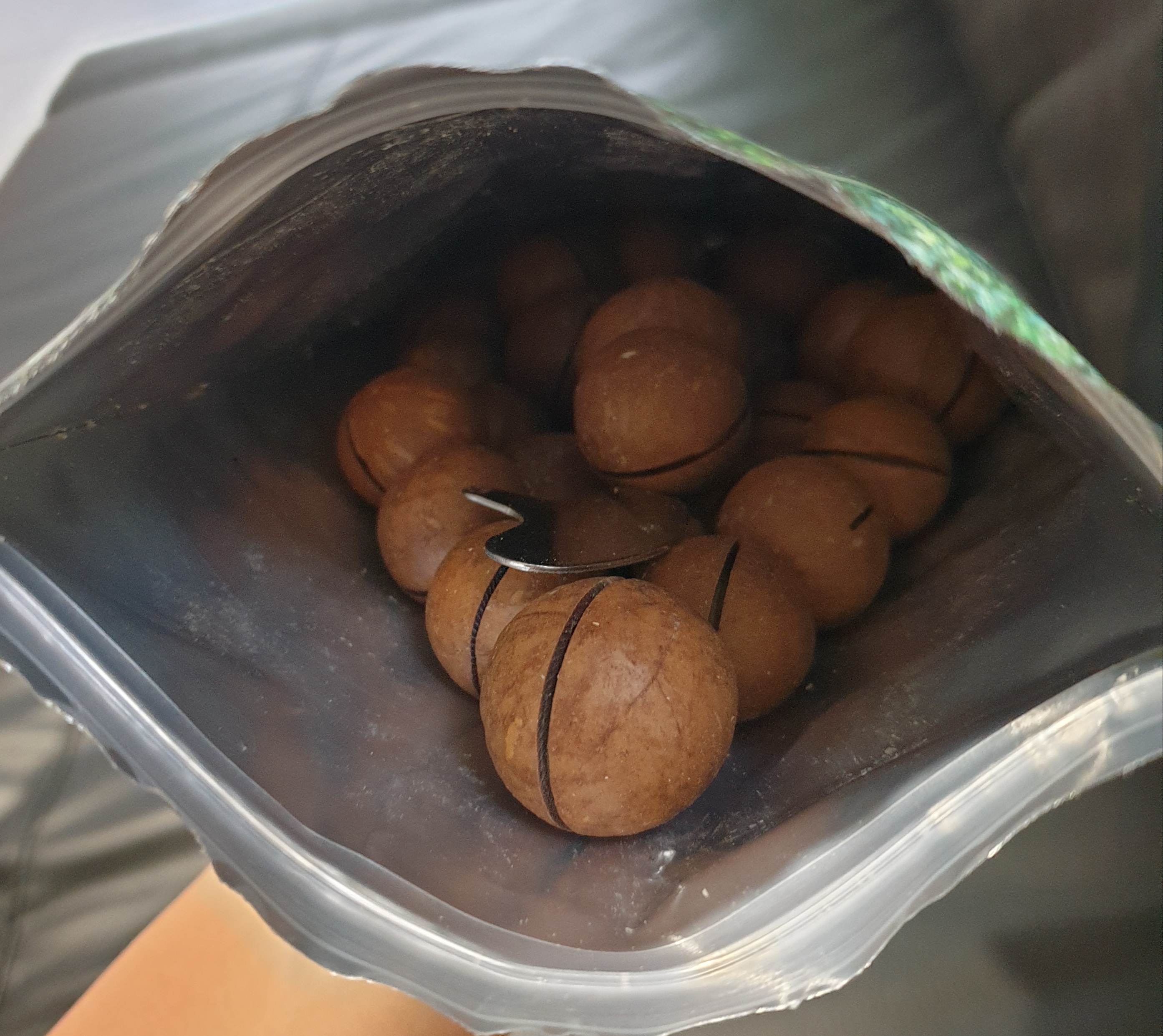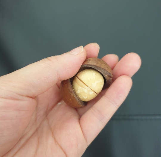 마카다미아가 껍질채 들어있고, 크래커가 함께 들어있어 동봉된 크래커로 직접 까서 먹어야 한다.