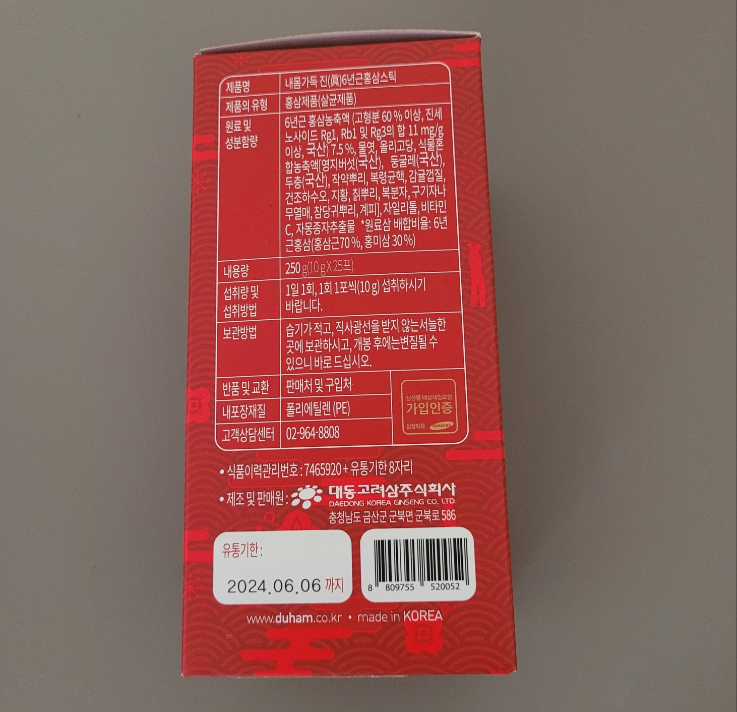 제조원 및 판매: 대동고려삼(주)