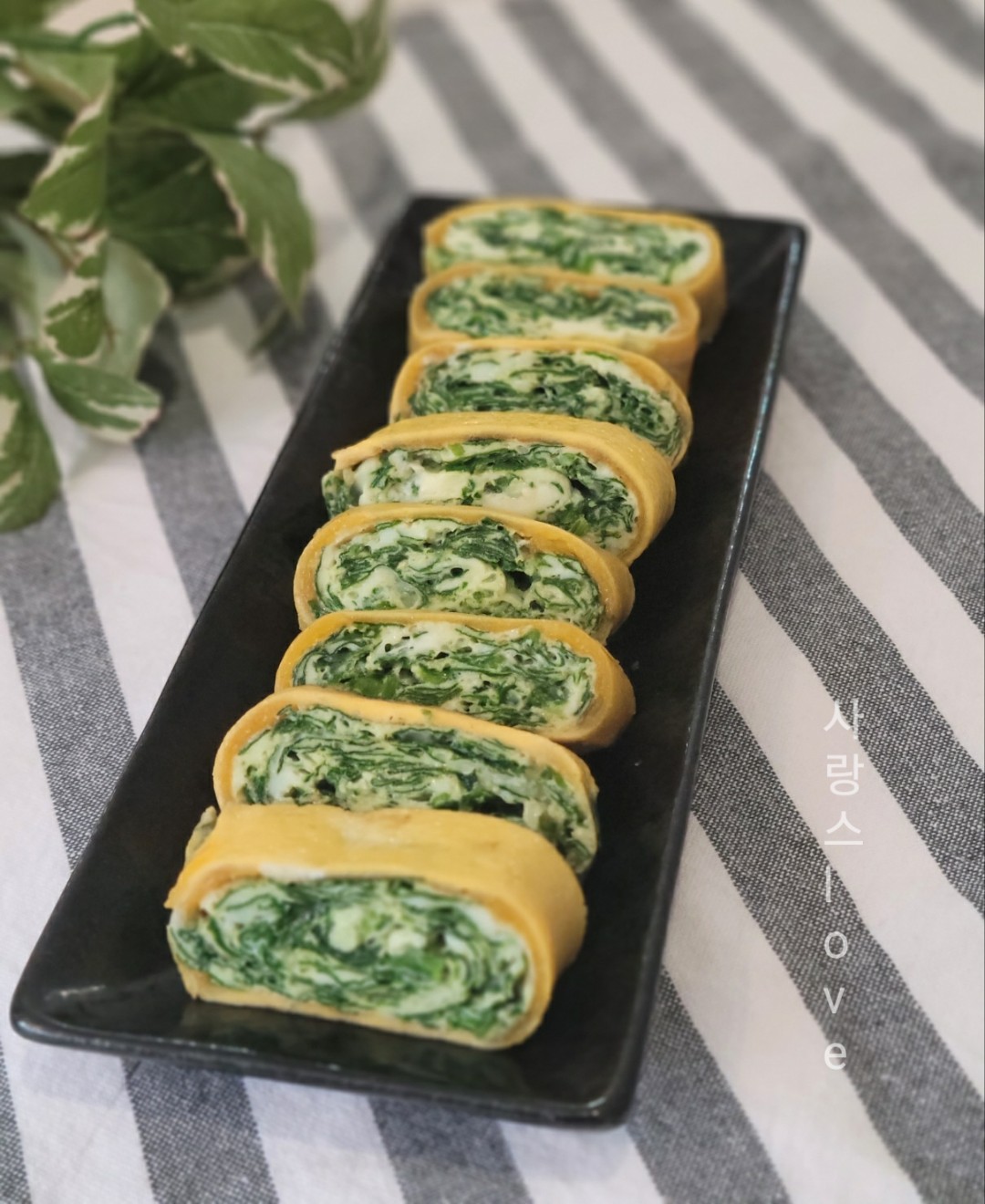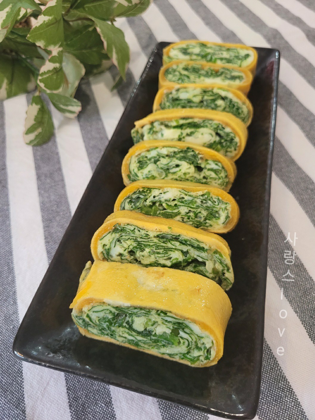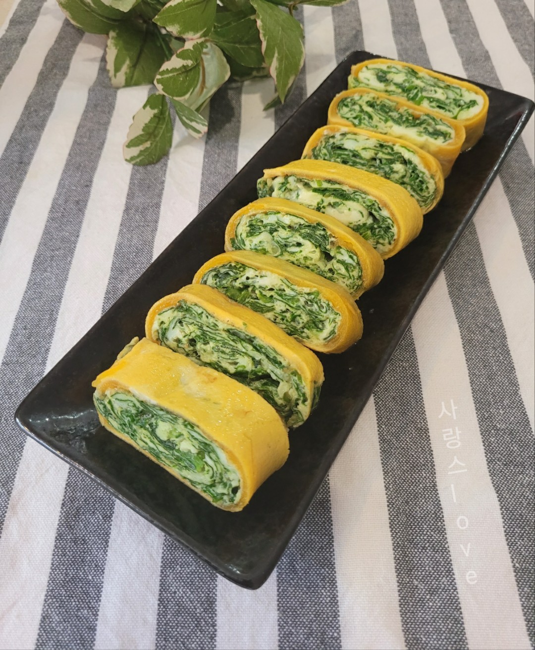 색감도 예쁜 영양 가득 시금치 계란말이입니다.