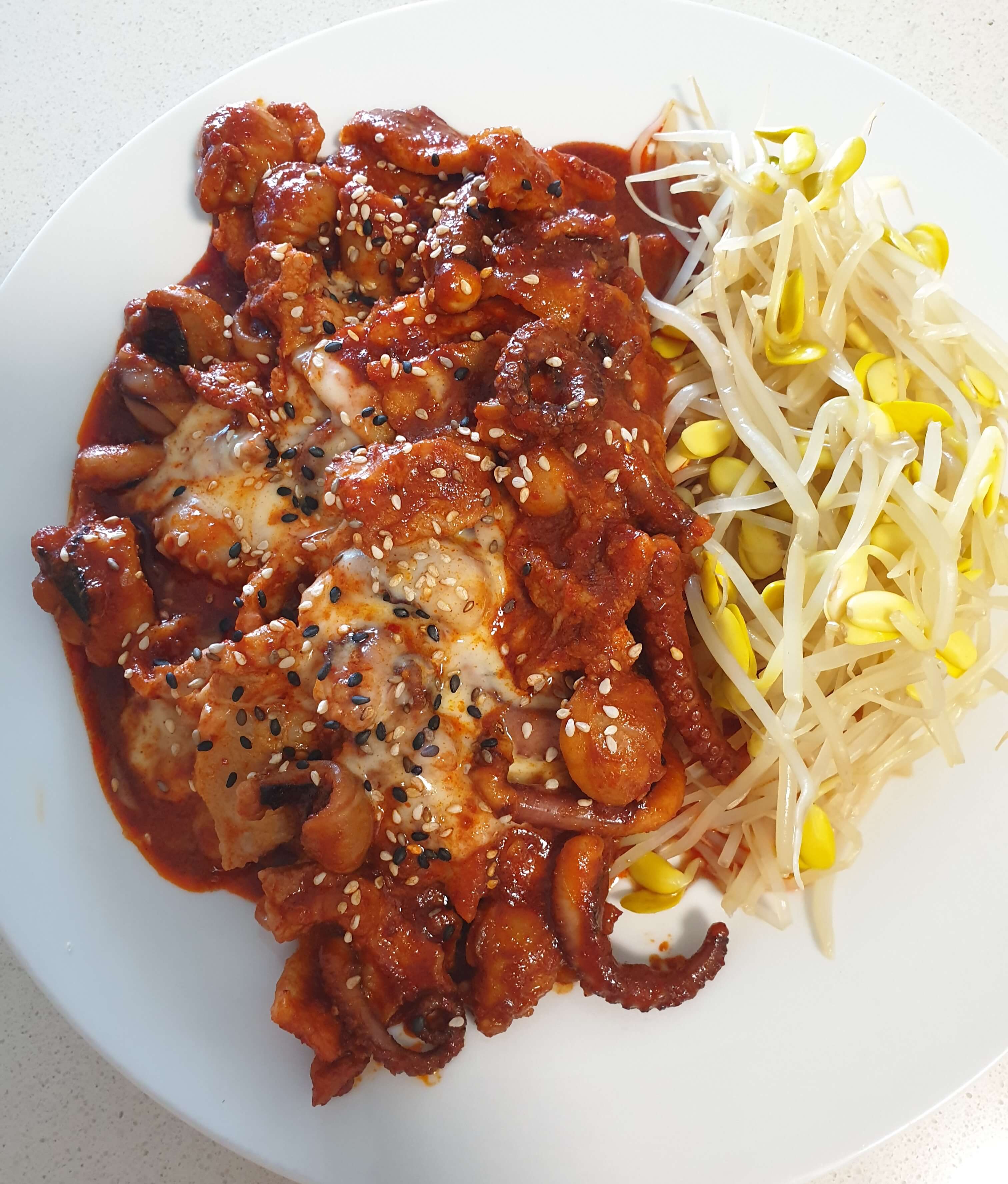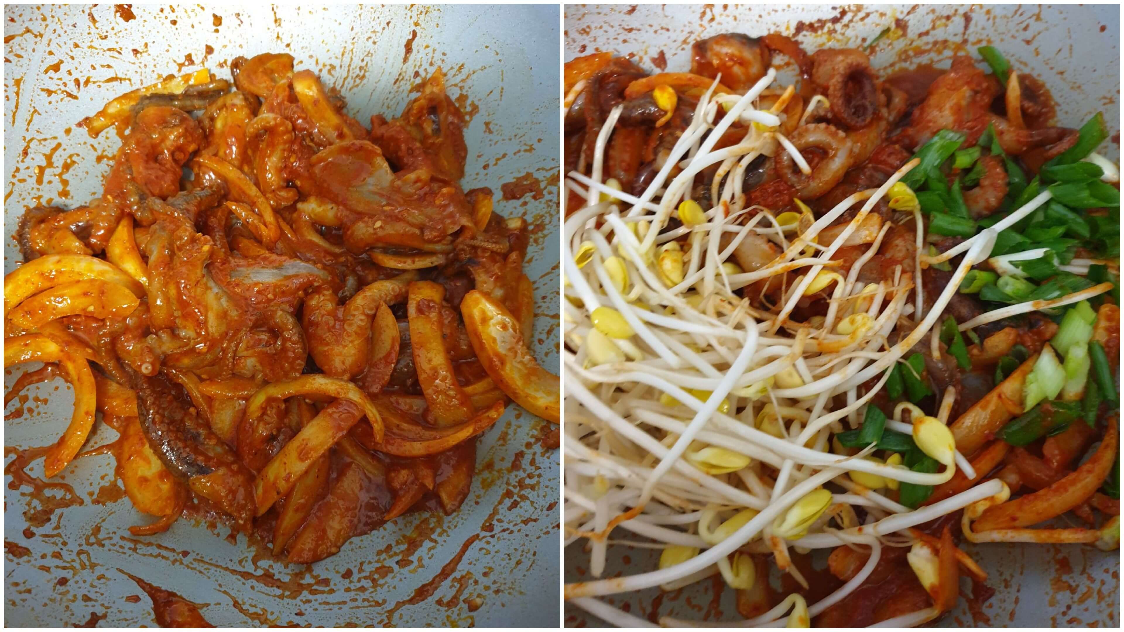 저는 주꾸미에 추가로 양파랑 파, 콩나물을 넣어서 볶았어요