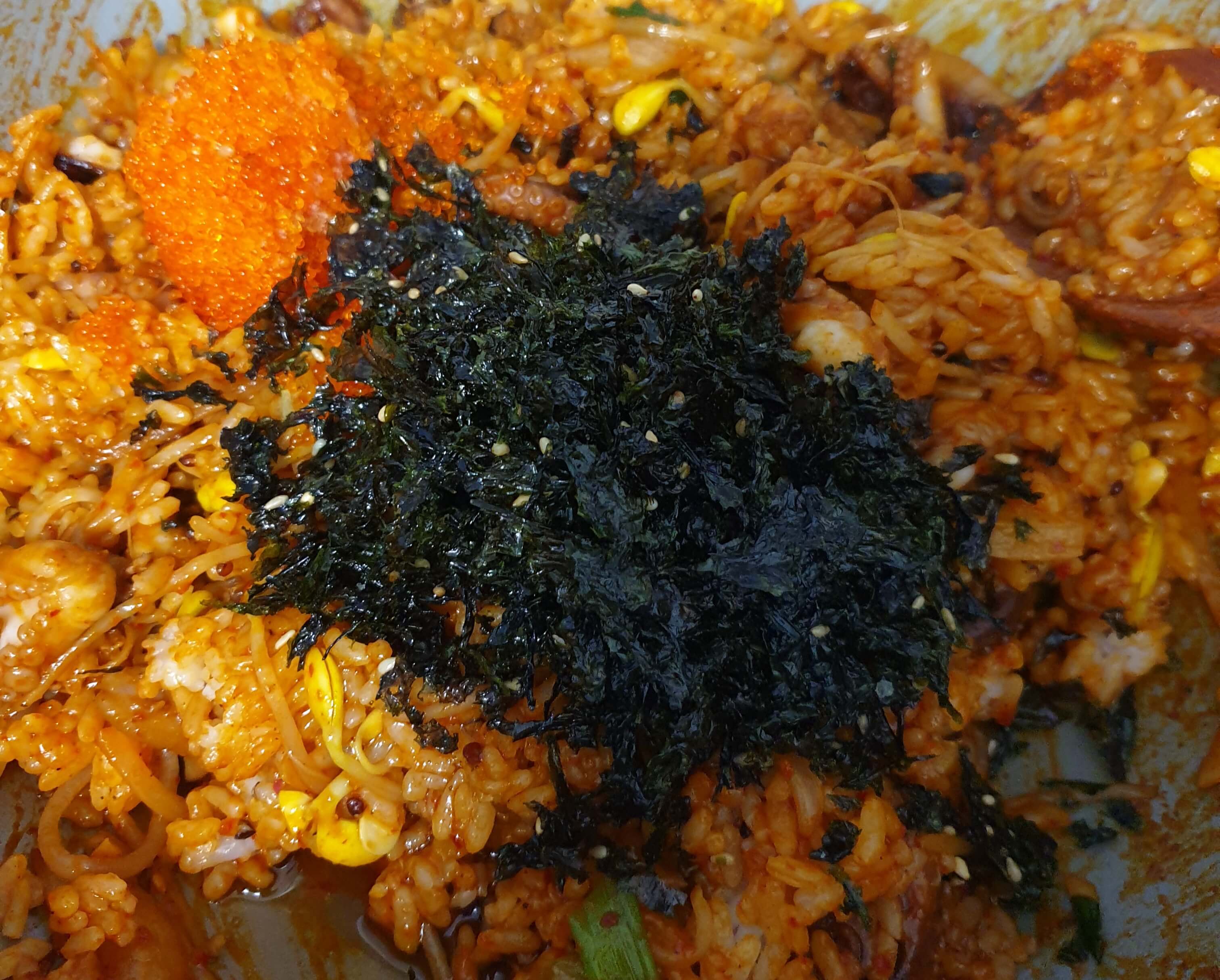 날치알이랑 김자반, 참기름을 추가로 넣어줬어요