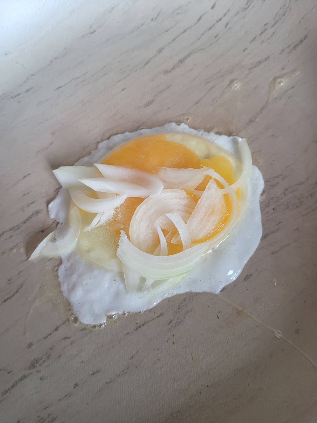 채 썬 양파를 올려주세요.