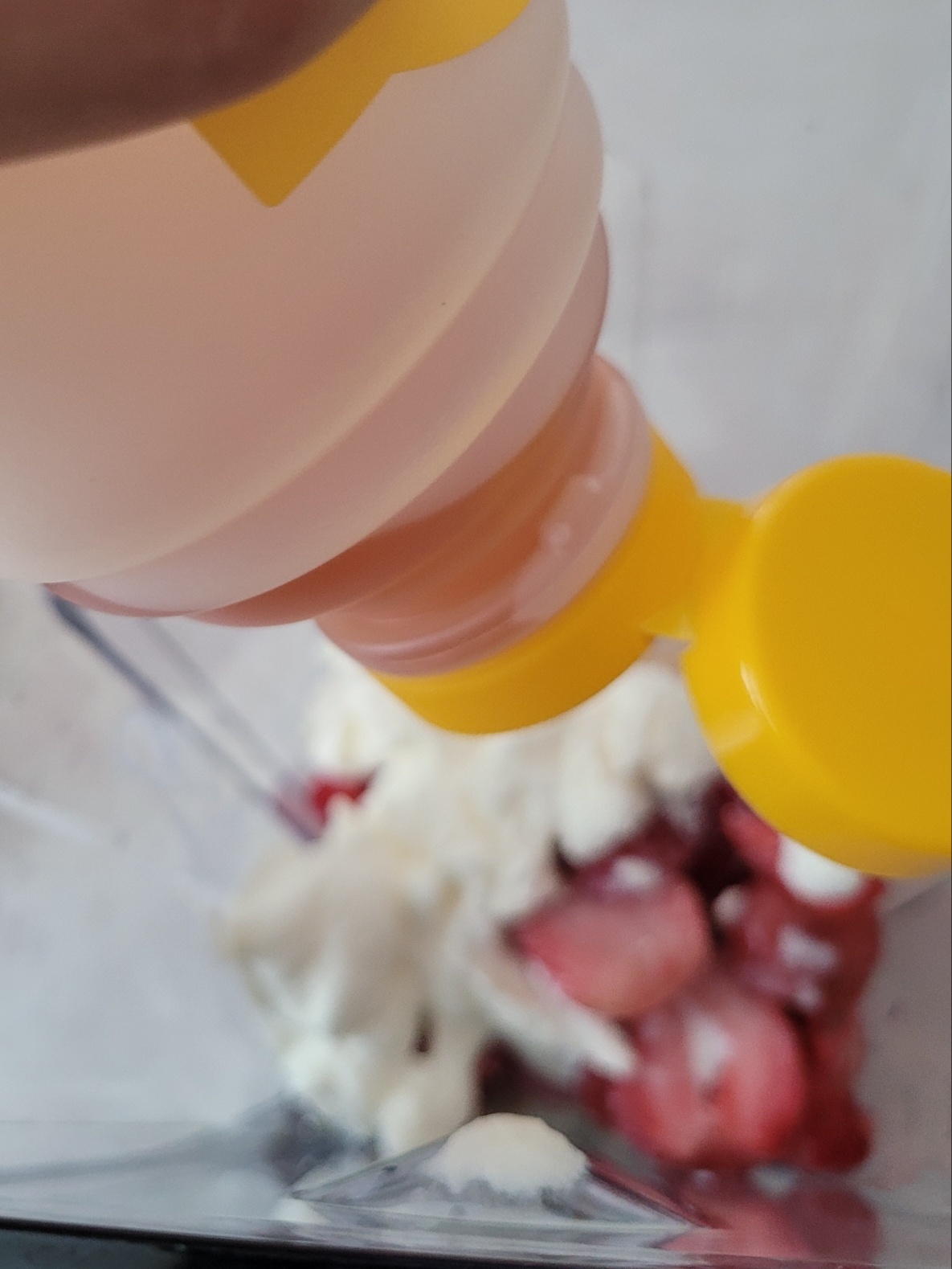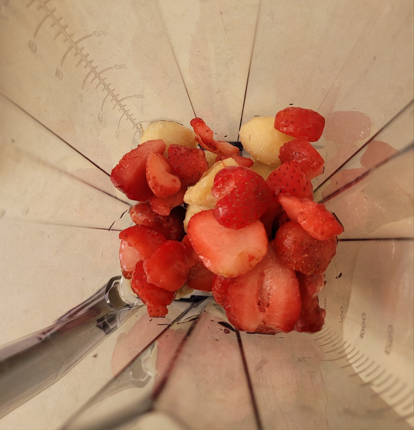 딸기 8~10개 분량을 믹서에 넣어 주세요.