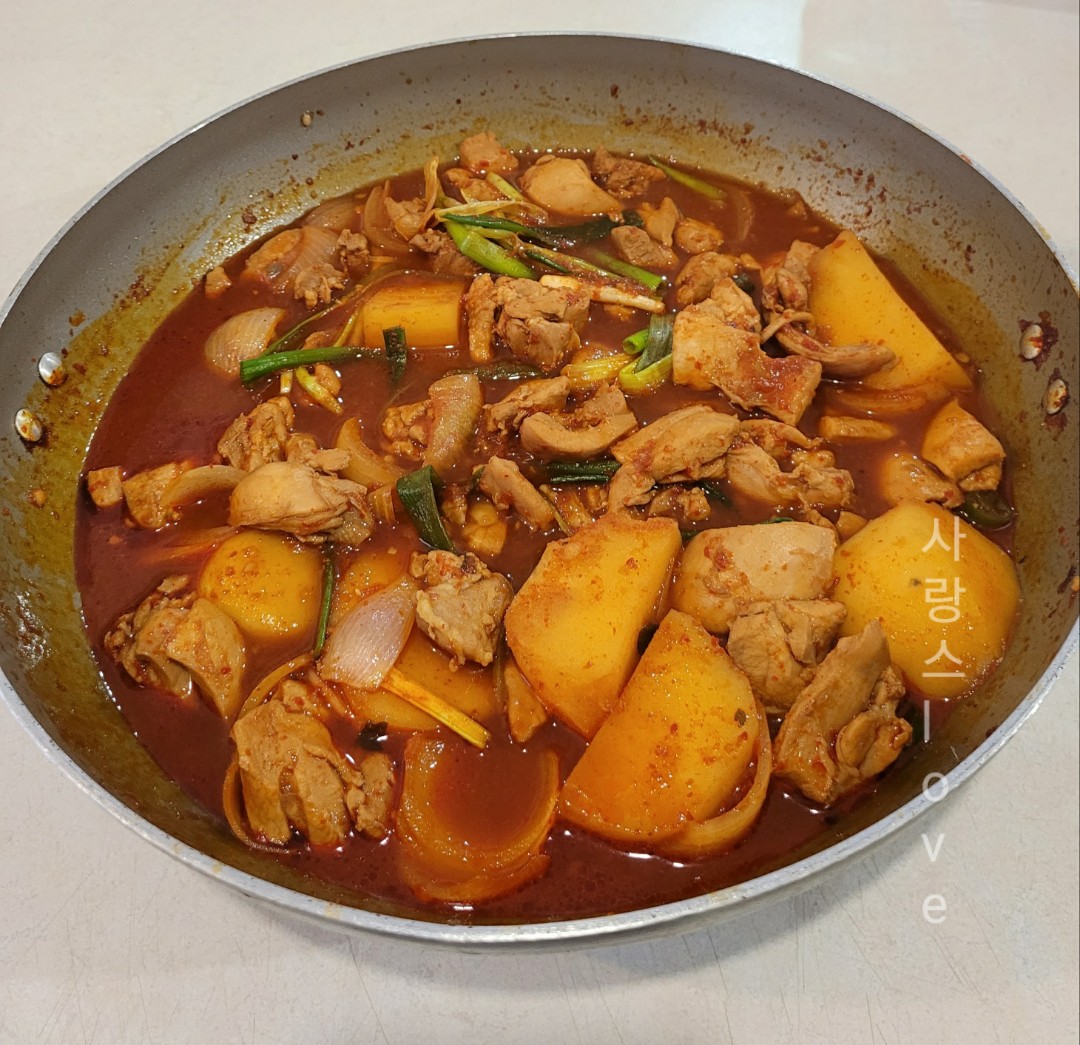 궁금해서 저도 국물 닭볶음탕을 만들어 보았어요.