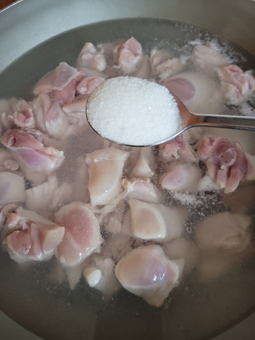 *저는 설탕 1큰술을 넣어 데쳤어요.