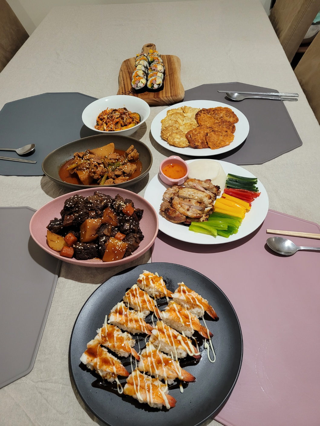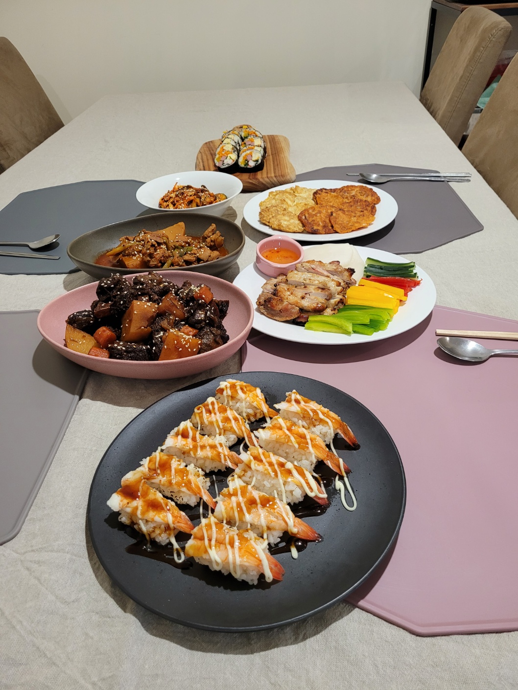 이사한 지 2주 조금 넘어서 집이 어느 정도 정리가 끝나가네요. 남편 회사 지인분들이 오랜만에 토요일 휴무라 날을 맞춰 집들이를 했어요. 항공 샷을 찍고 싶었으나... 다들 기다리고 계셔서 급