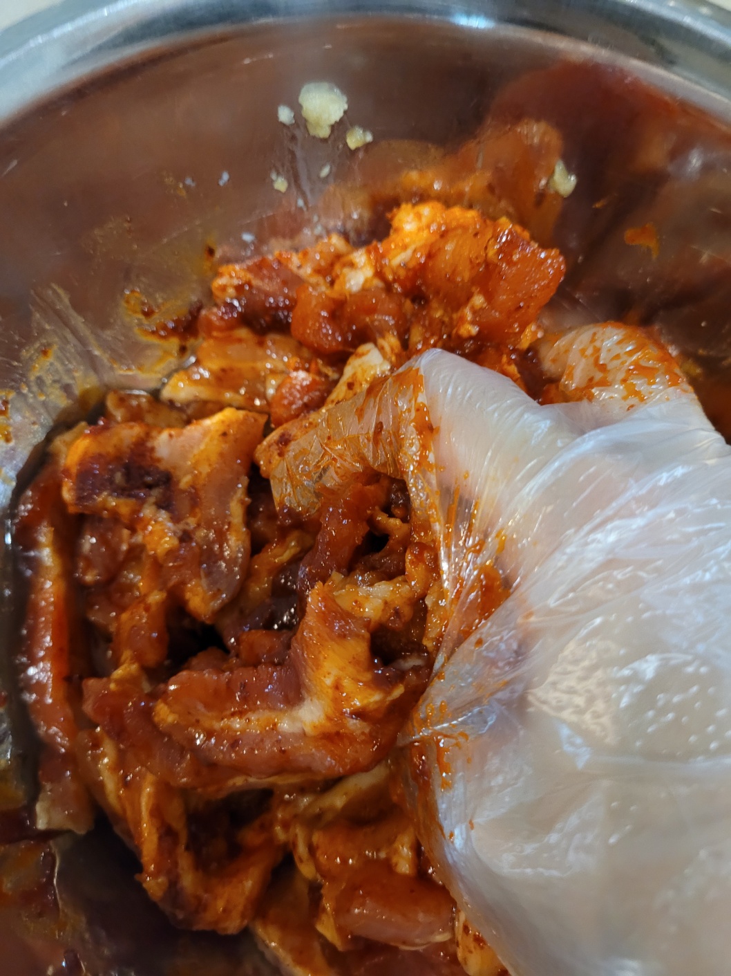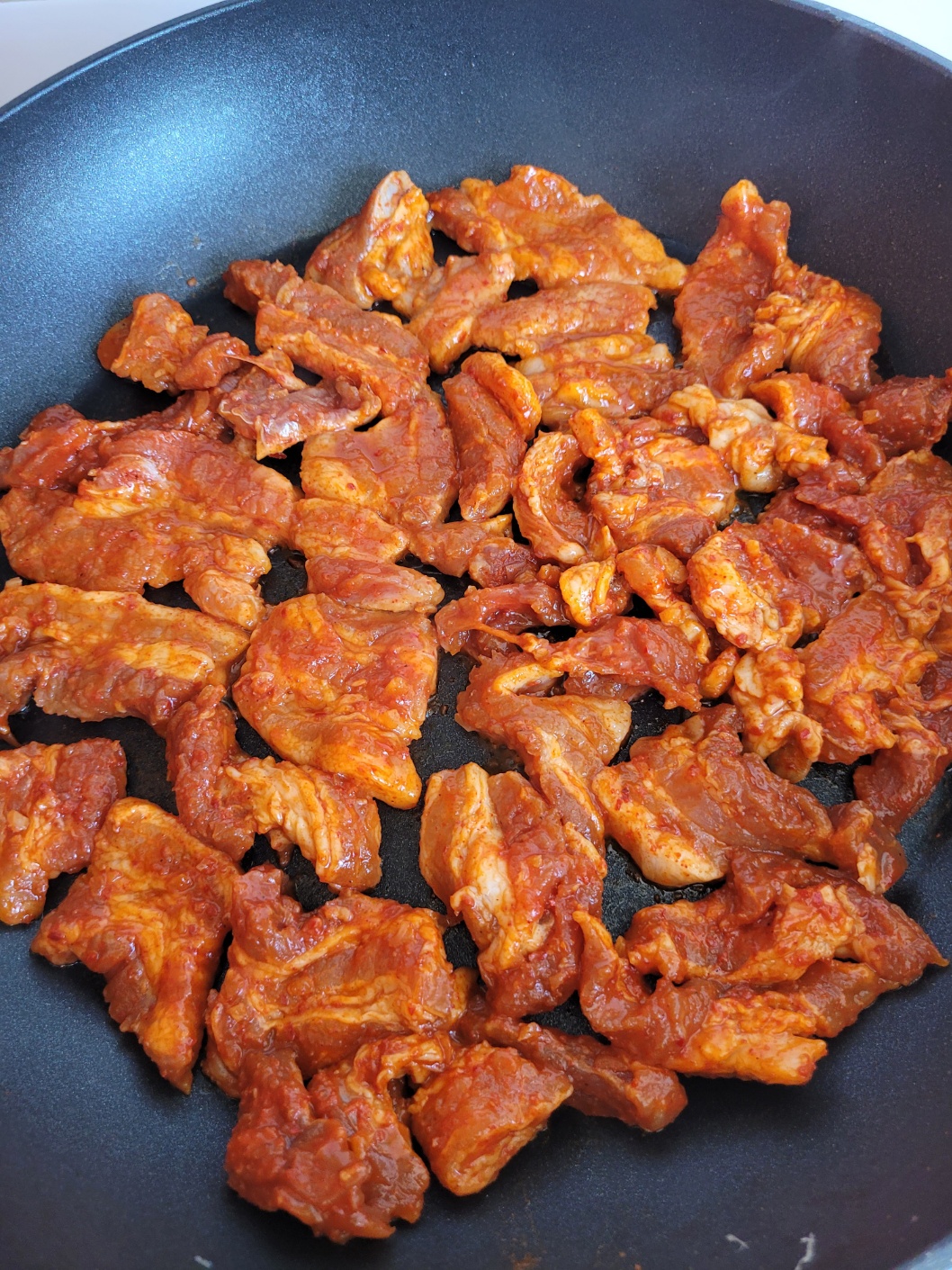 숙성해 둔 고추장 삼겹살을 올리고