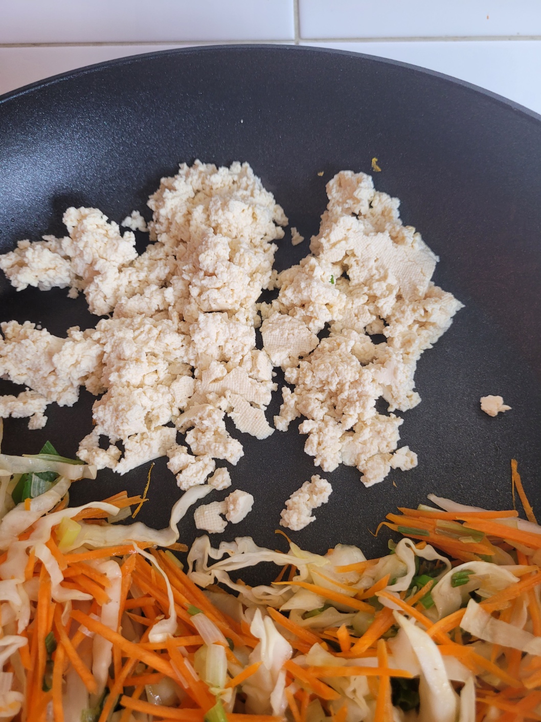 두부를 볶아 수분을 날려주세요.