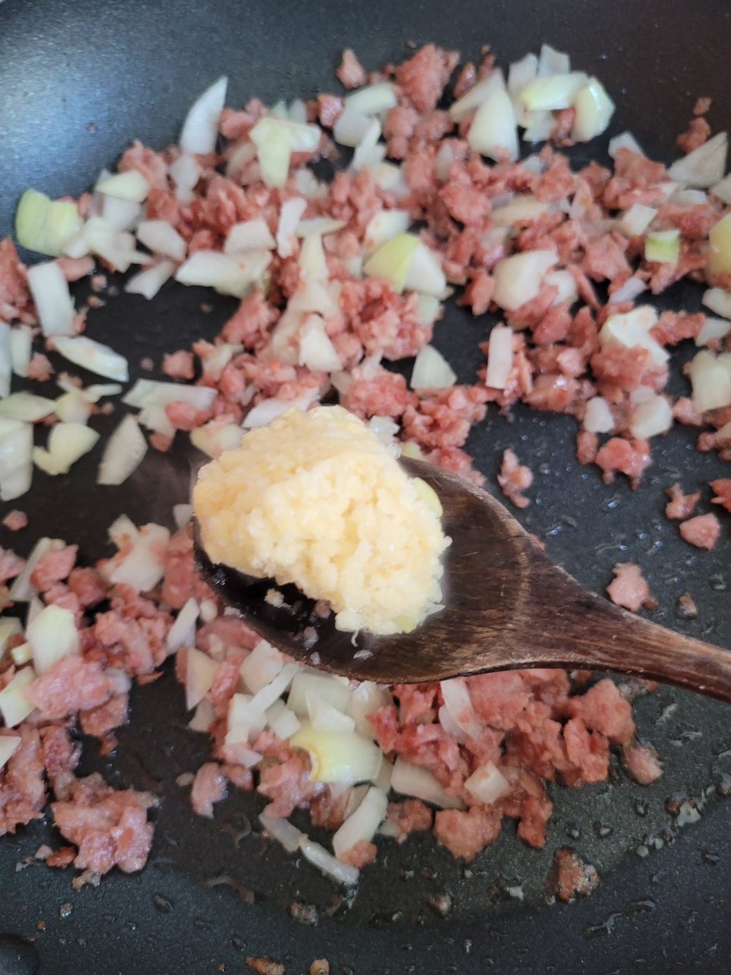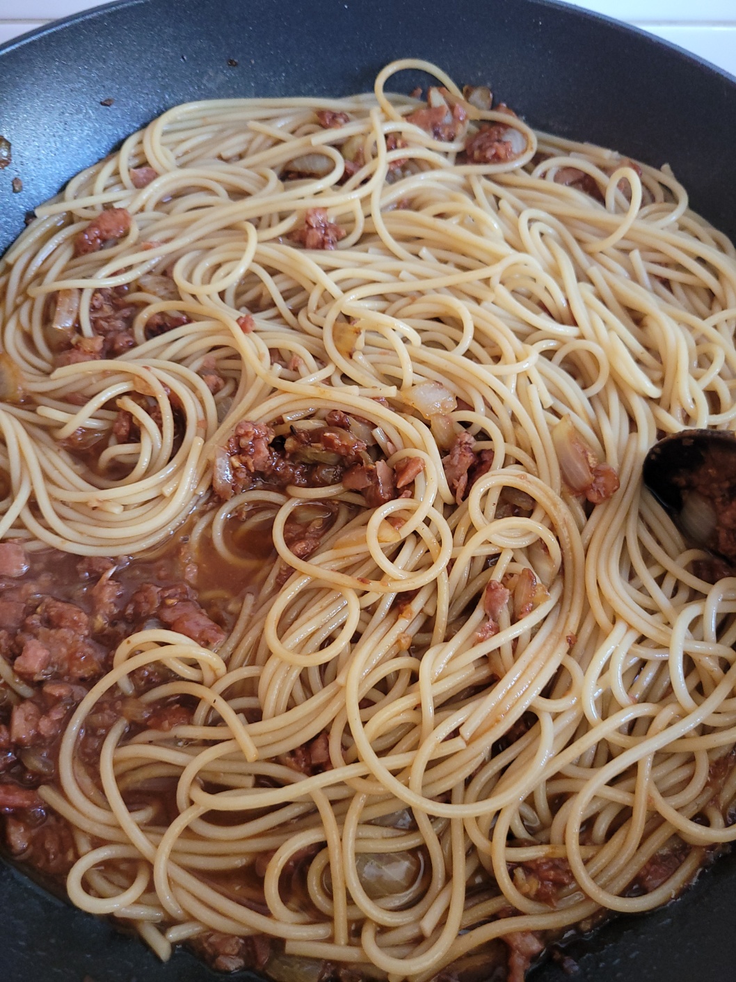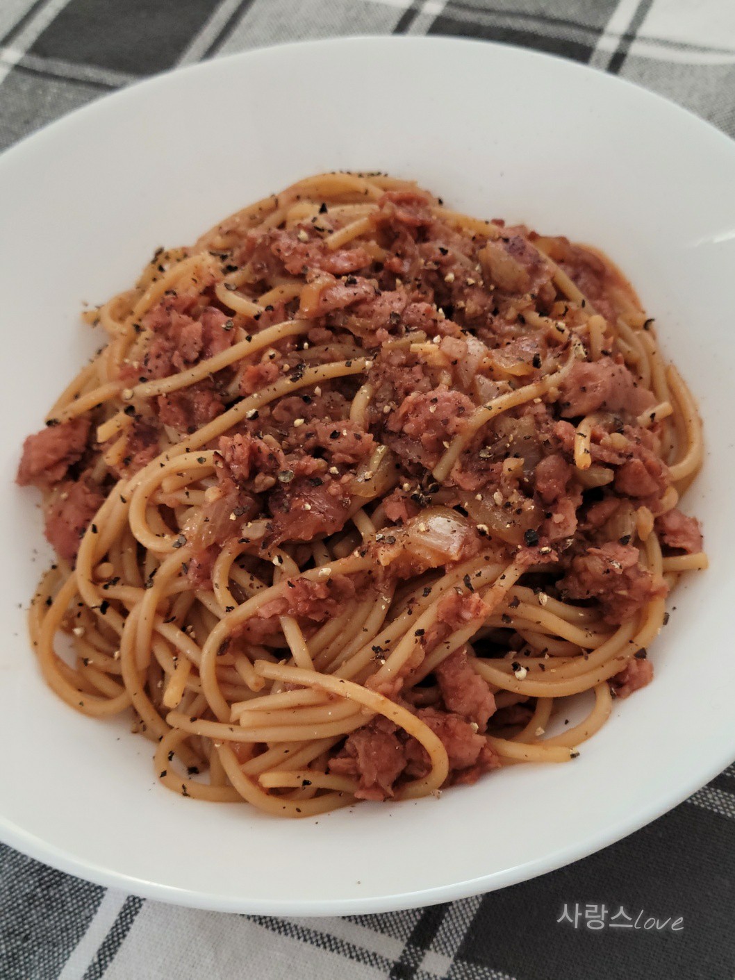 스팸, 간장, 파스타면, 양파!