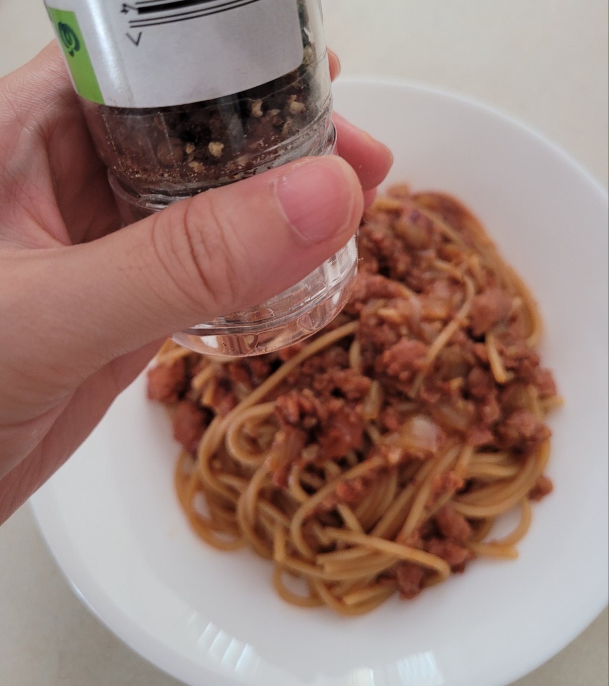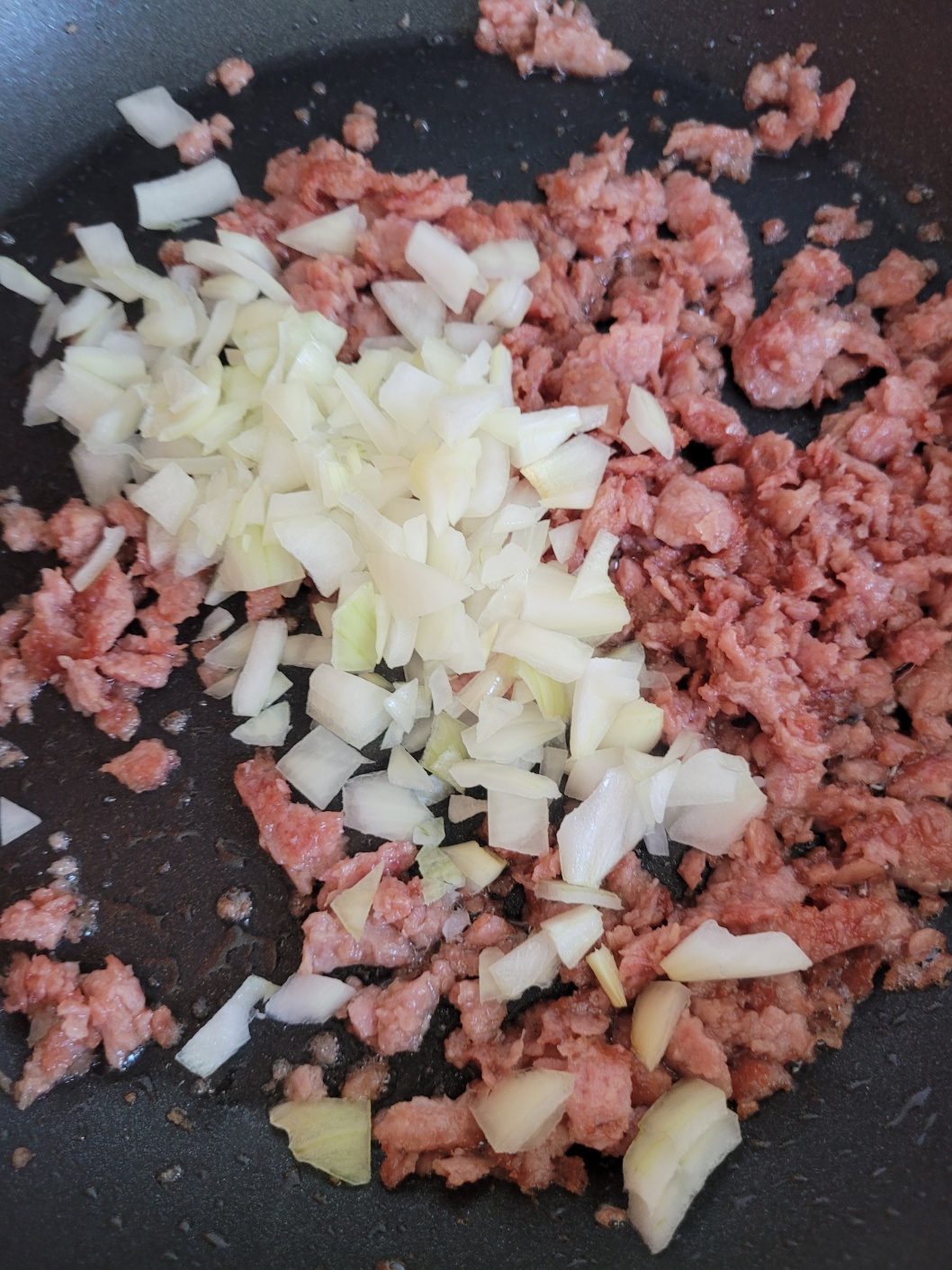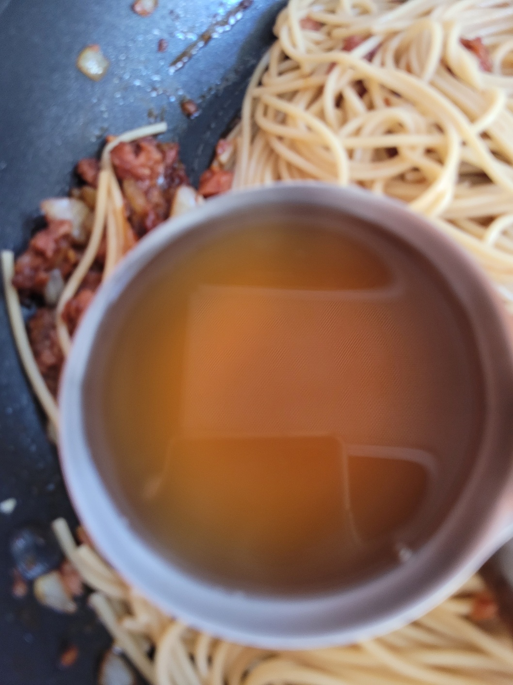 스팸, 간장, 파스타면, 양파!