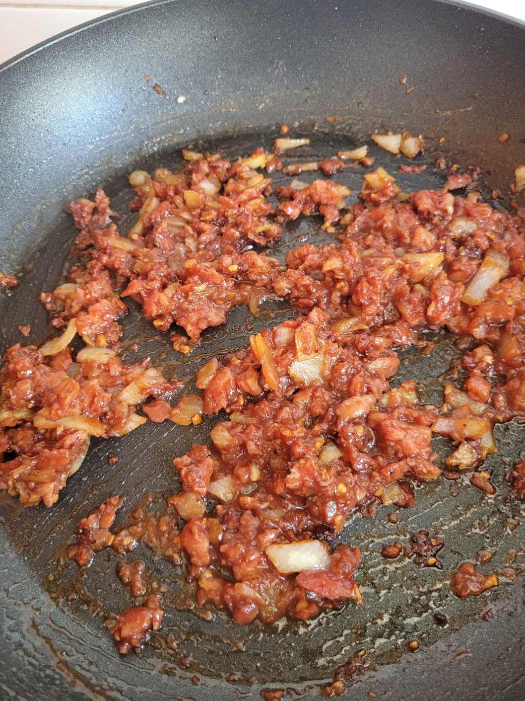 간장을 태우듯이 볶아 주세요.