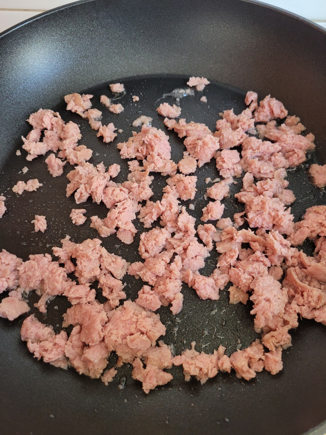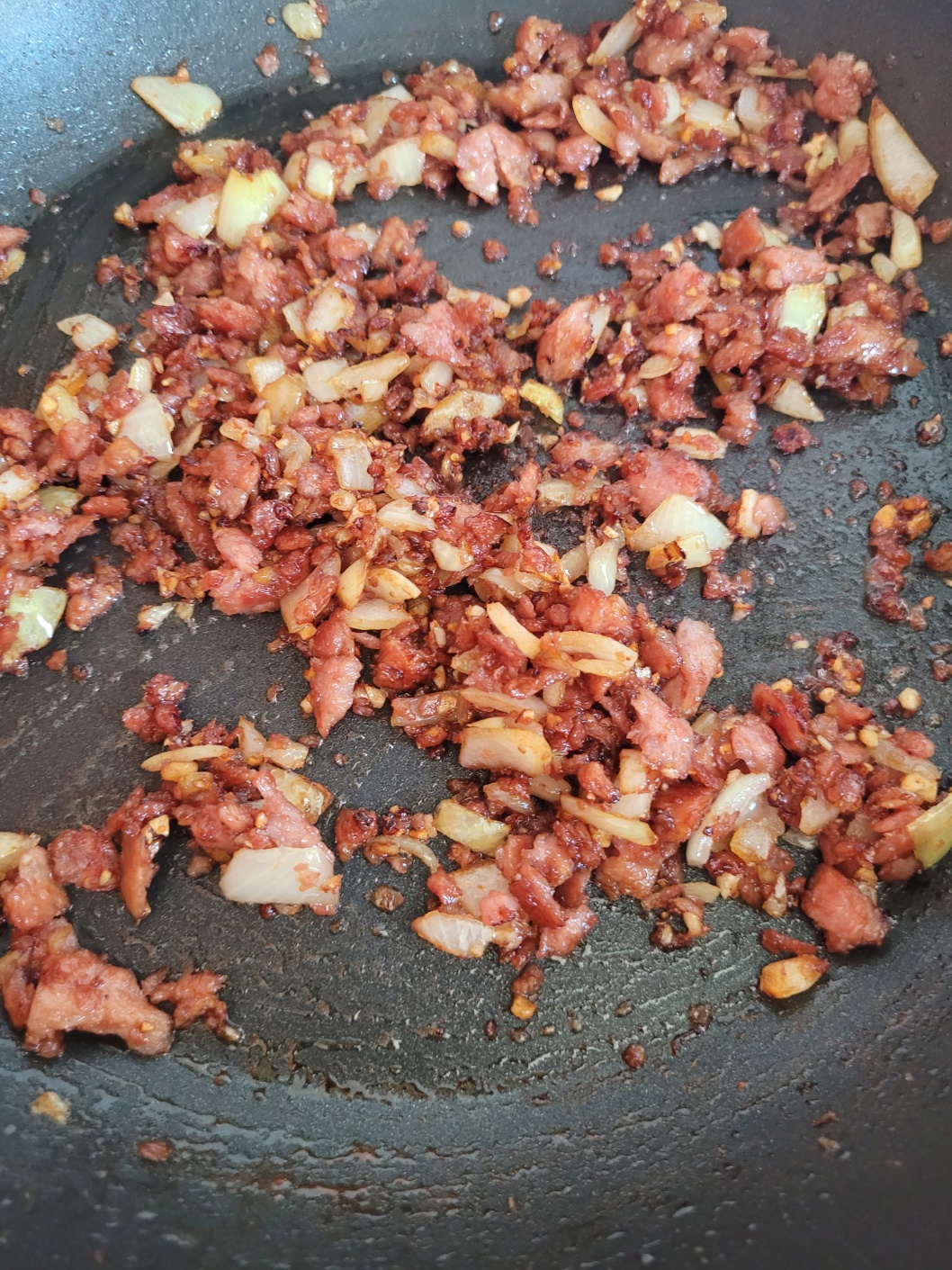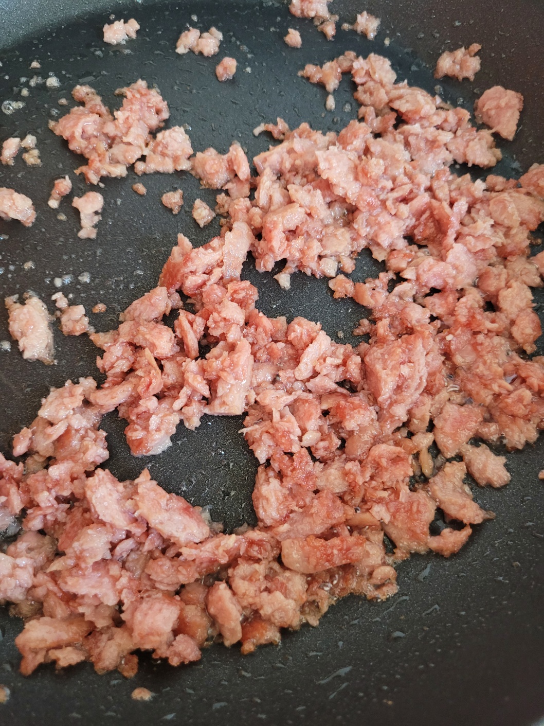 중불에서 스팸을 튀기듯이 볶아 주세요.