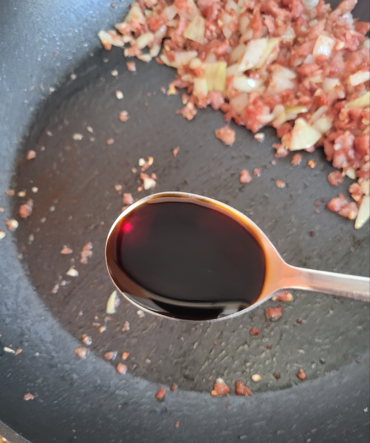 양조간장 2큰술을 한쪽에 넣고