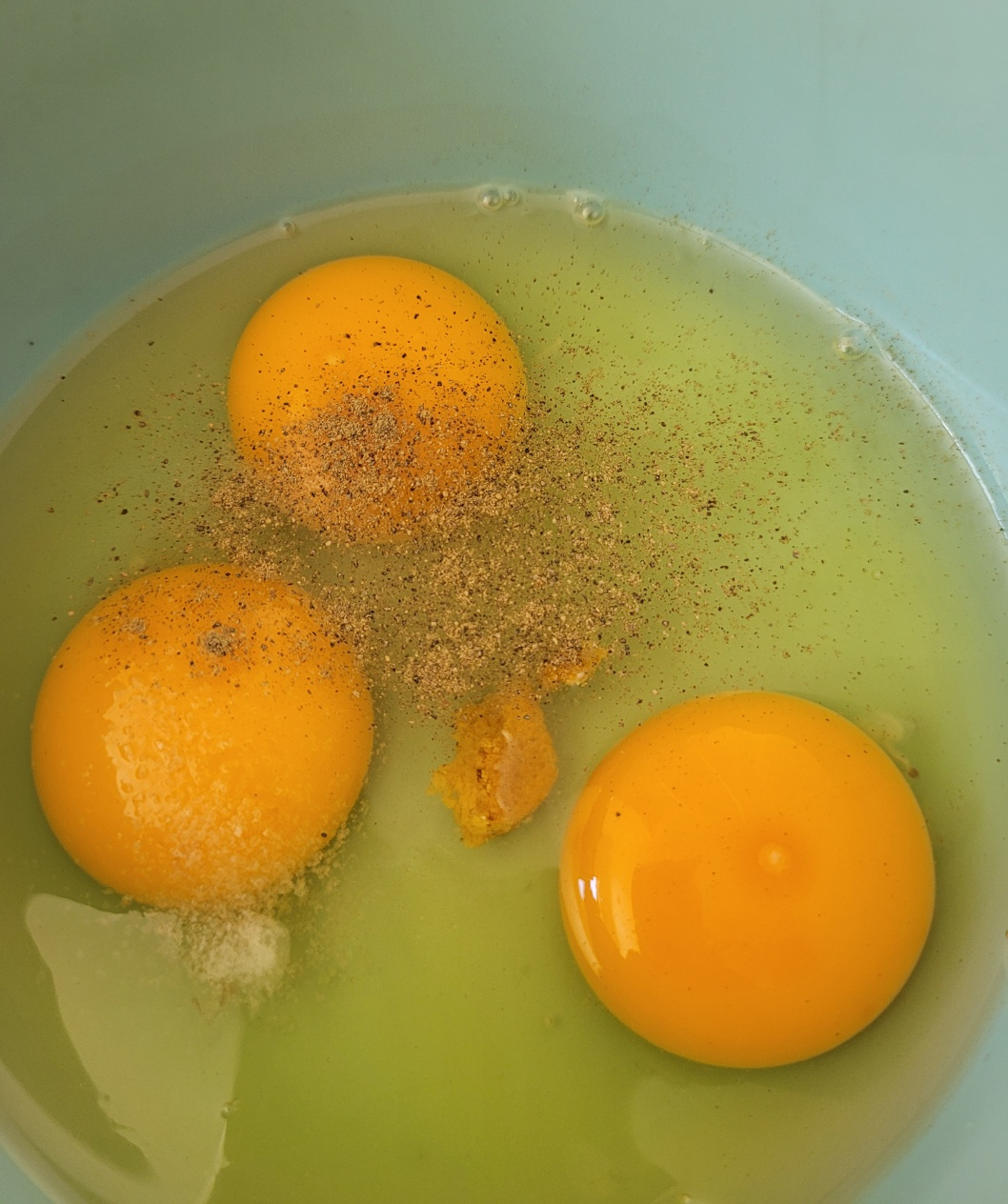 계란 3개를 그릇에 깨트려 넣고