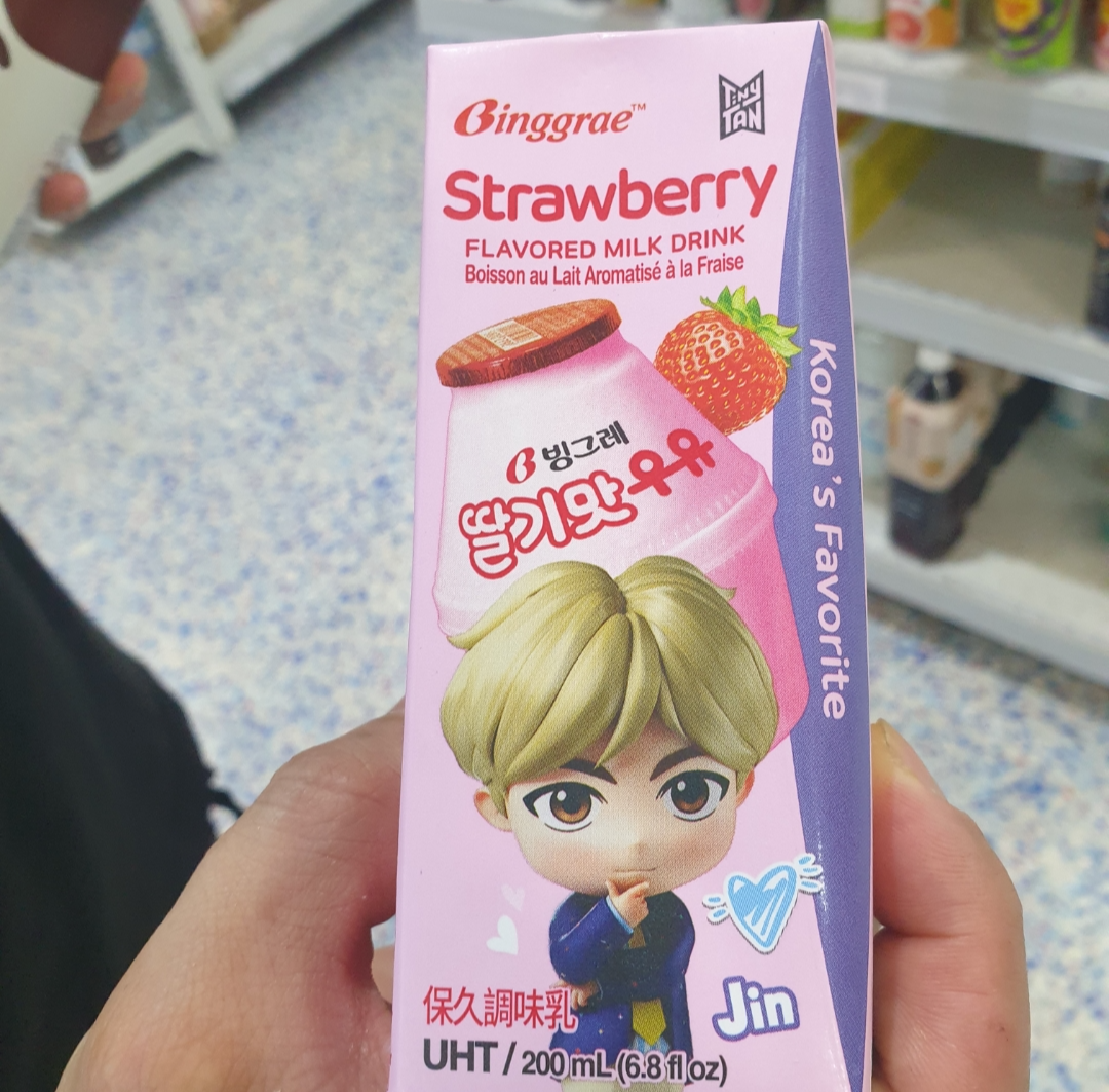 한인마트에서 발견한 빙그레 BTS 캐릭터 우유...