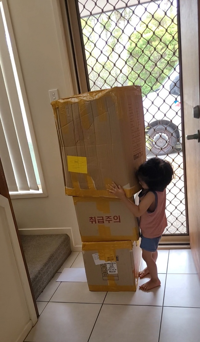 아이는 자기 장난감이 오는 걸 알고 택배 온다고 알려준 순간부터 10초마다 언제 택배 오냐고 물어본다ㅎㅎ