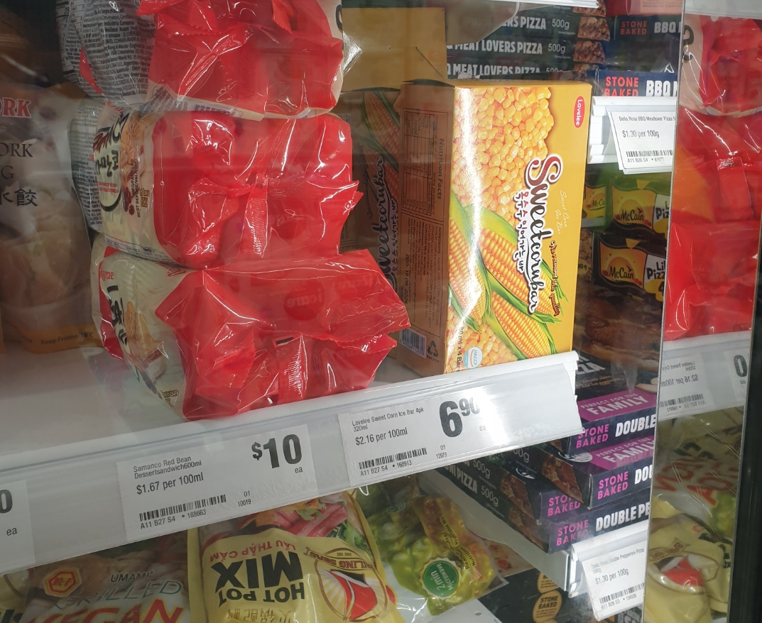호주 대형마트 울월스에 입성한 붕어싸만코와 옥수수 아이스크림