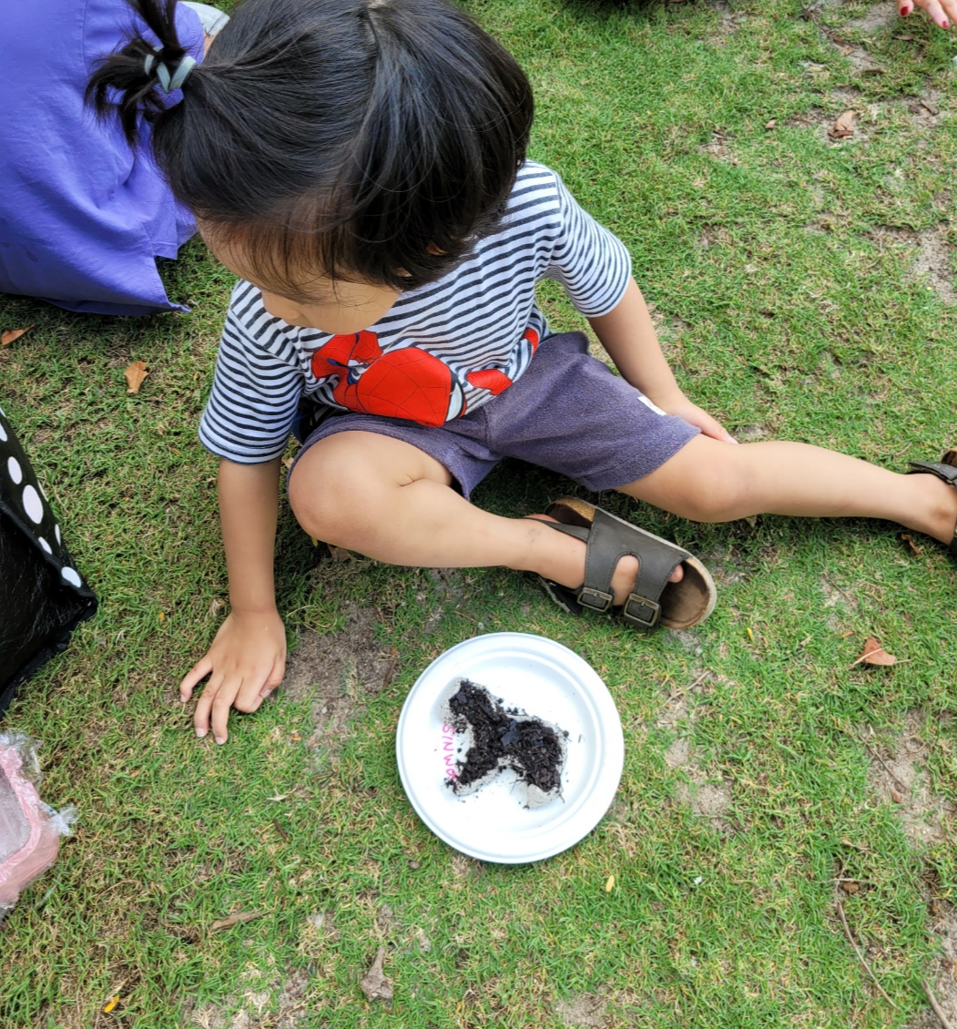 놀이터에서 재미있게 놀고 잔디로 자리를 옮겼다.