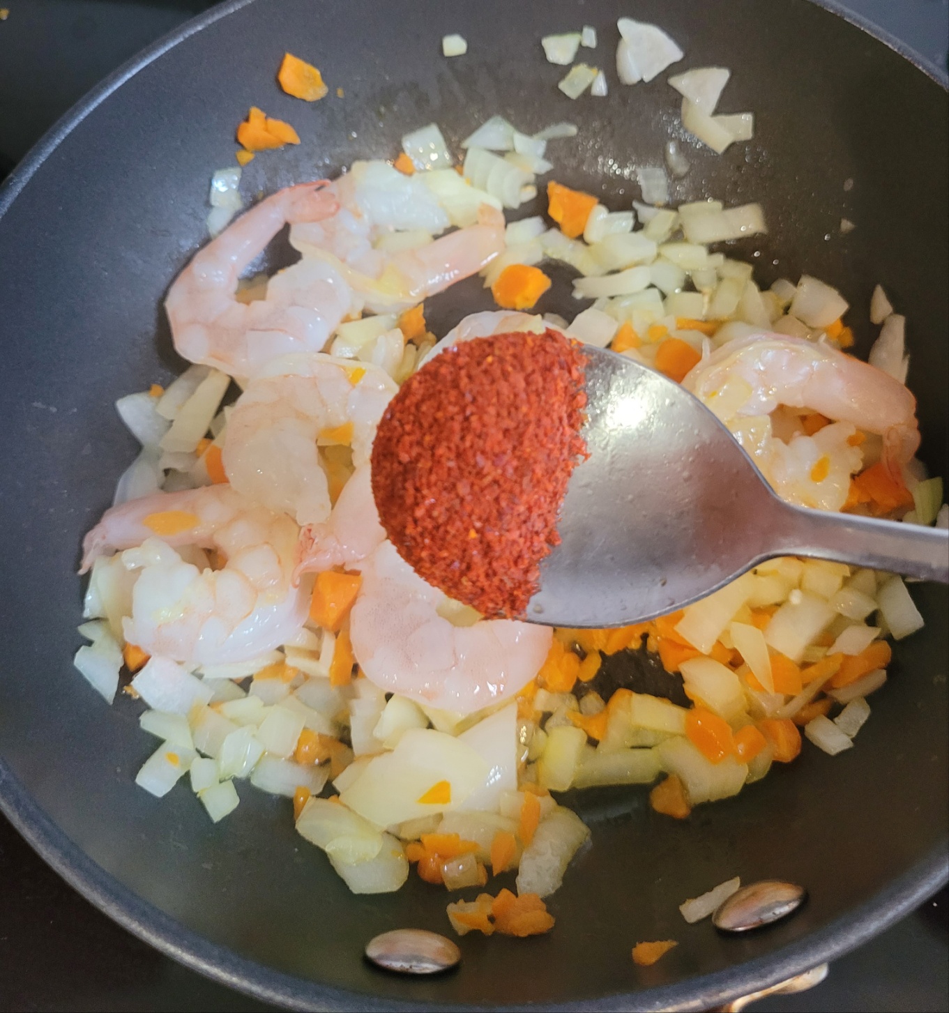 고춧가루 1/2큰술을 넣고 볶아주세요.