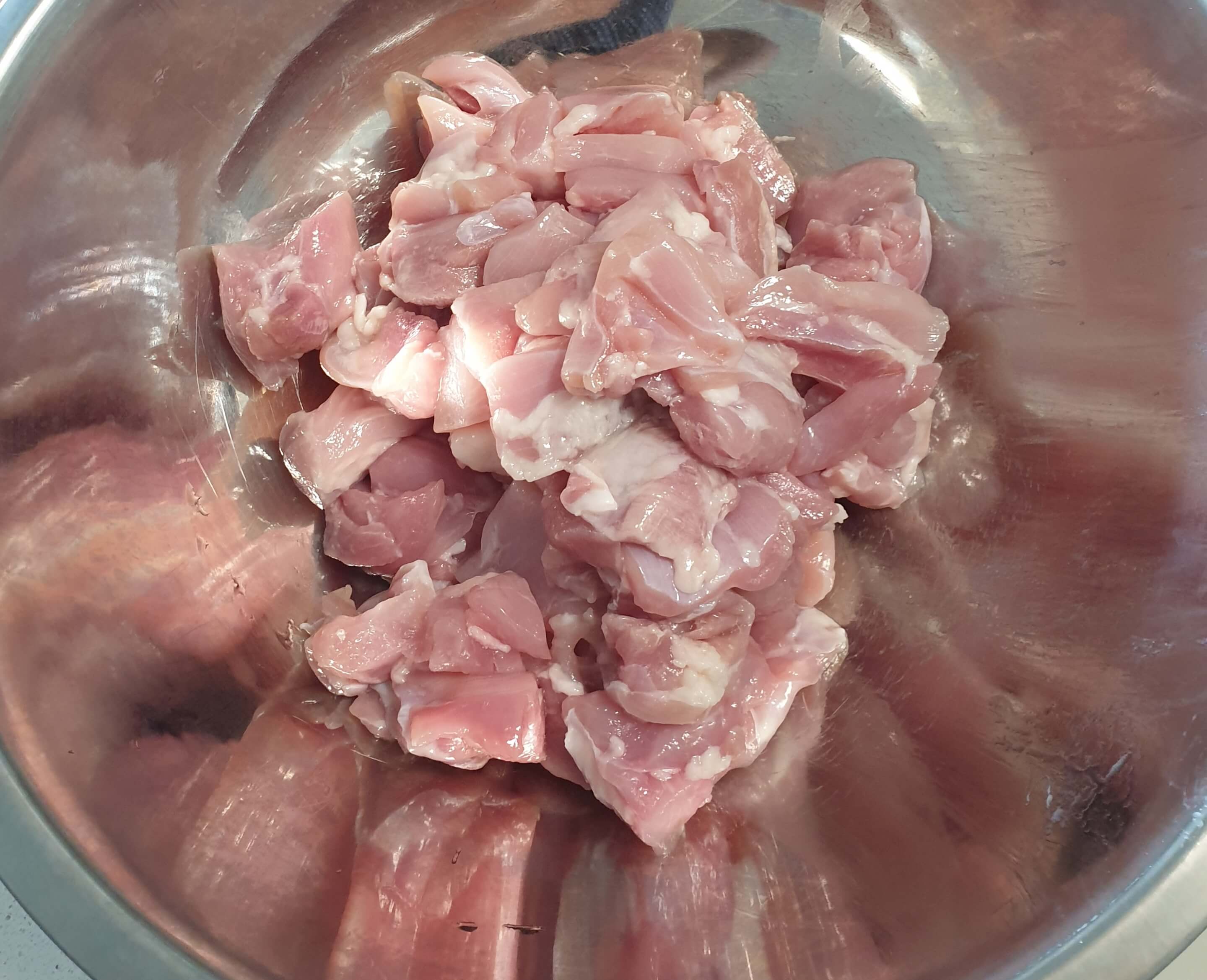 닭 고기는 먹기 좋은 크기로 잘라서 그릇에 담아 주세요