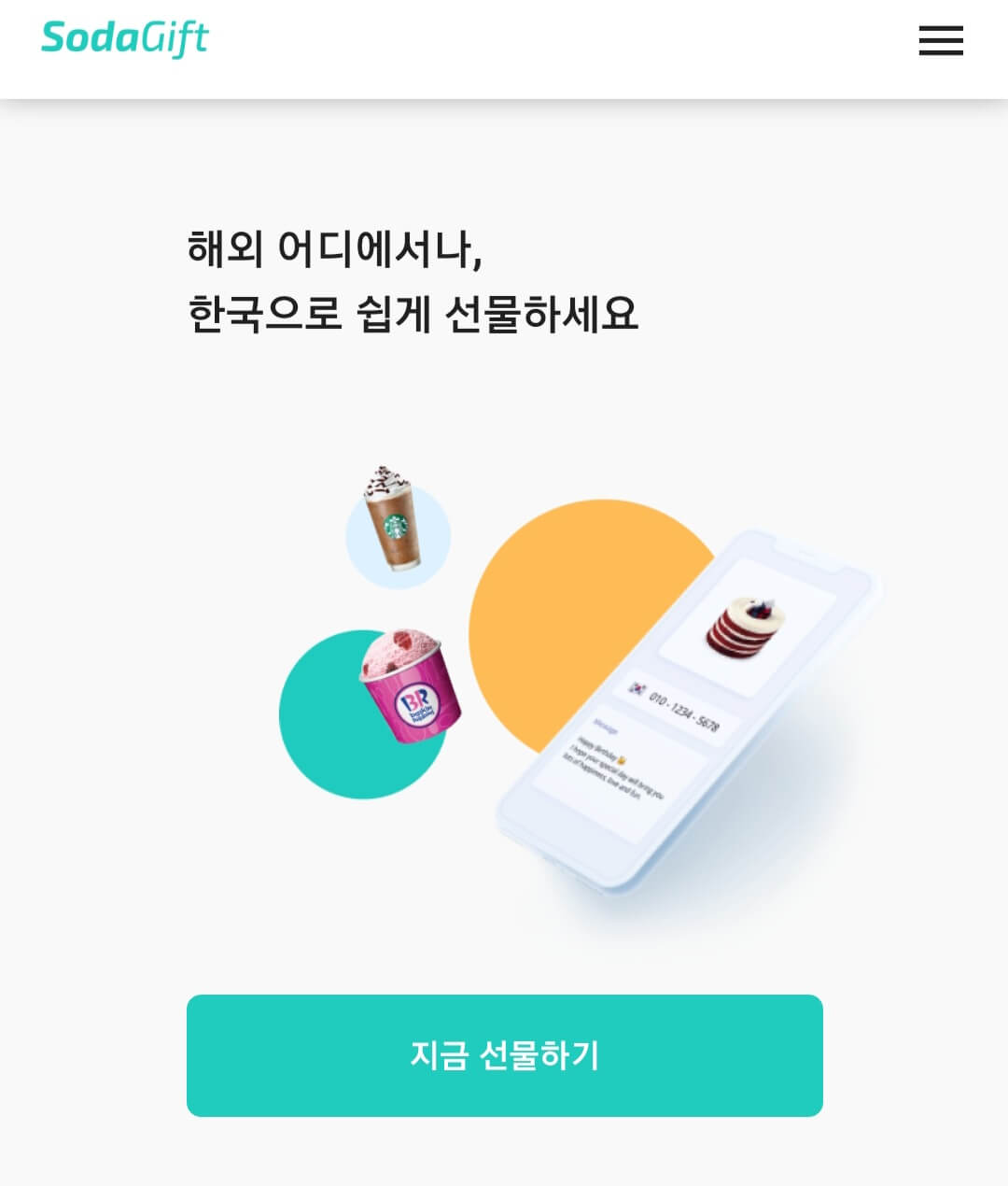 Send gifts to Korea or the US instantly cross-border via email or SMS! Treat friends, family, colleagues, and more on their birthday, holiday or any other occasion with SodaGift! Send gifts in a smarter way.