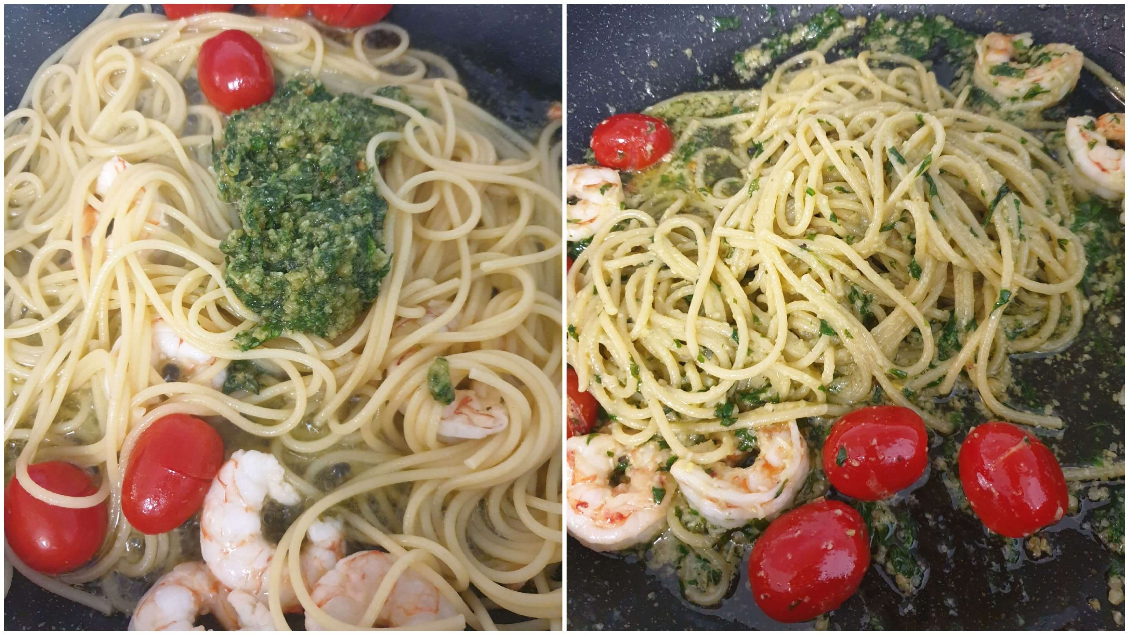 새우와 토마토가 있는 팬에 넣고