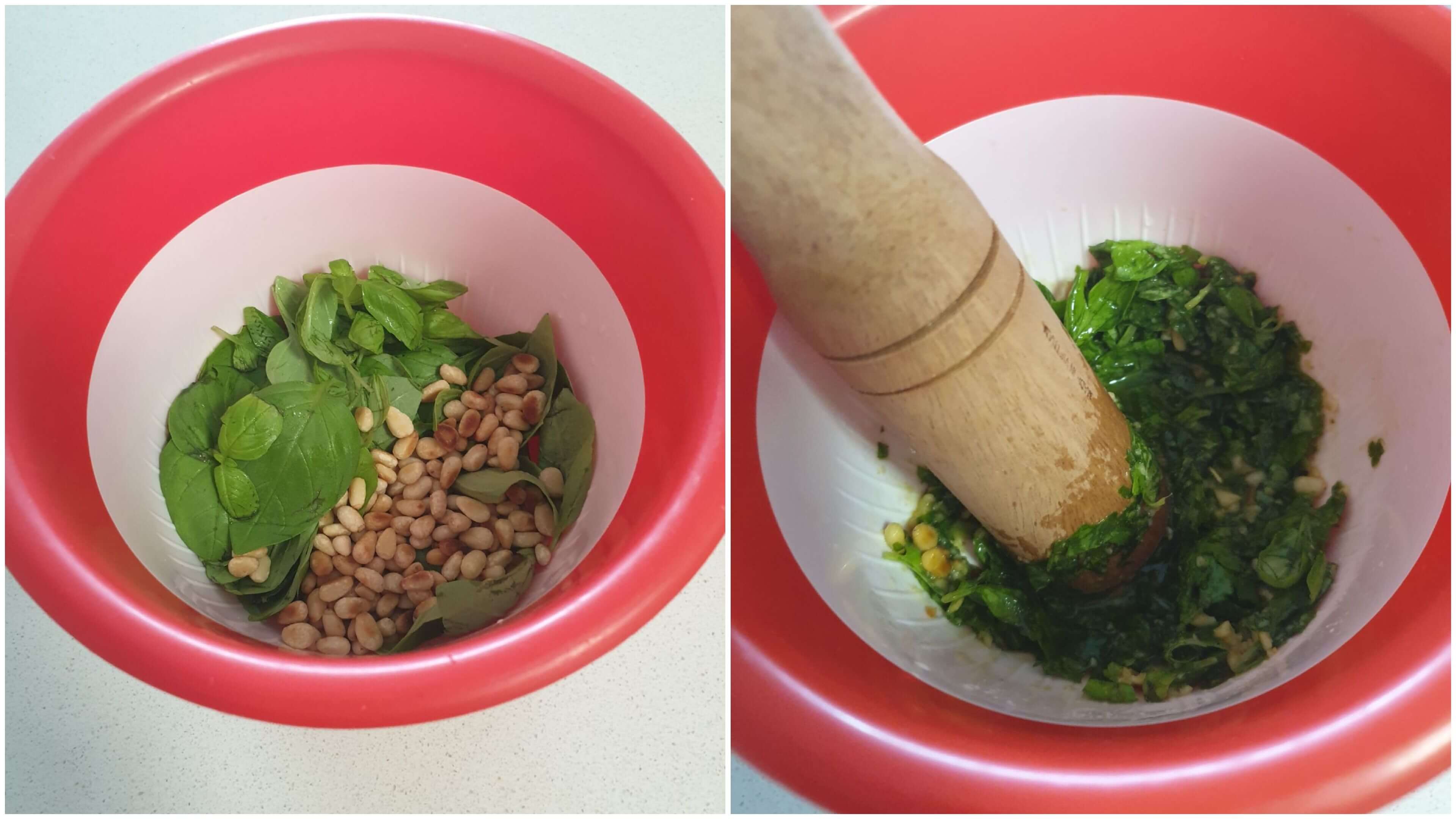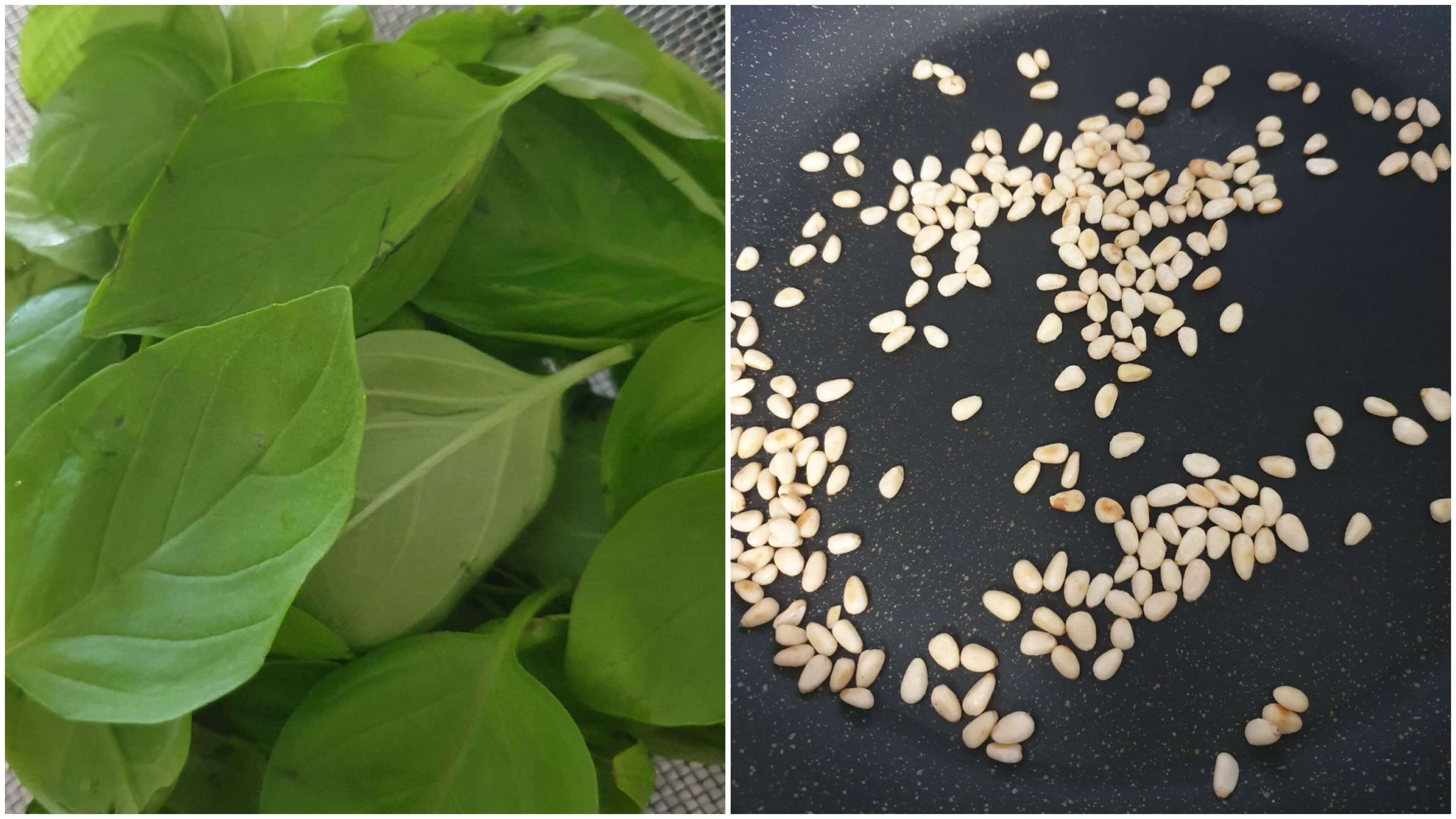 저는 바질 잎 20g, 잣 25g으로 파스타 1인분 양을 만들었어요!