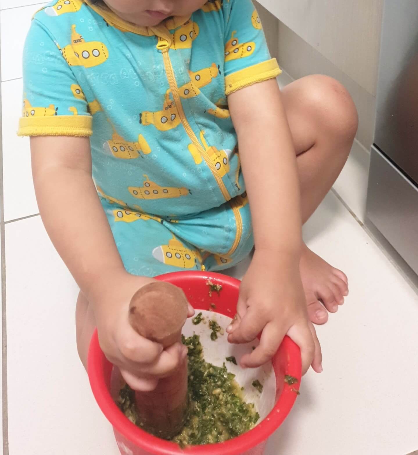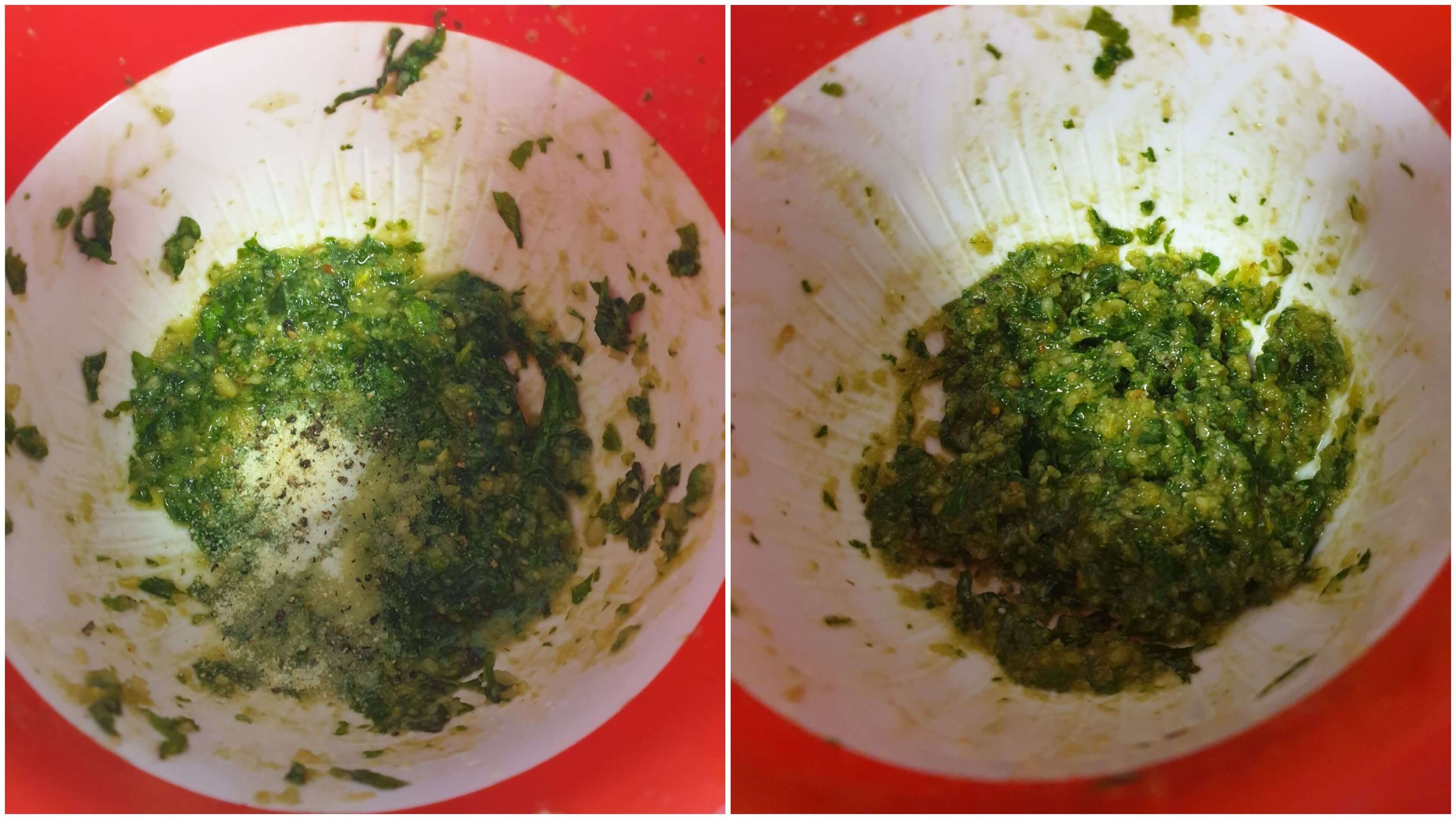 섞어주고 짭조름하면 바질 페스토는 완성이에요