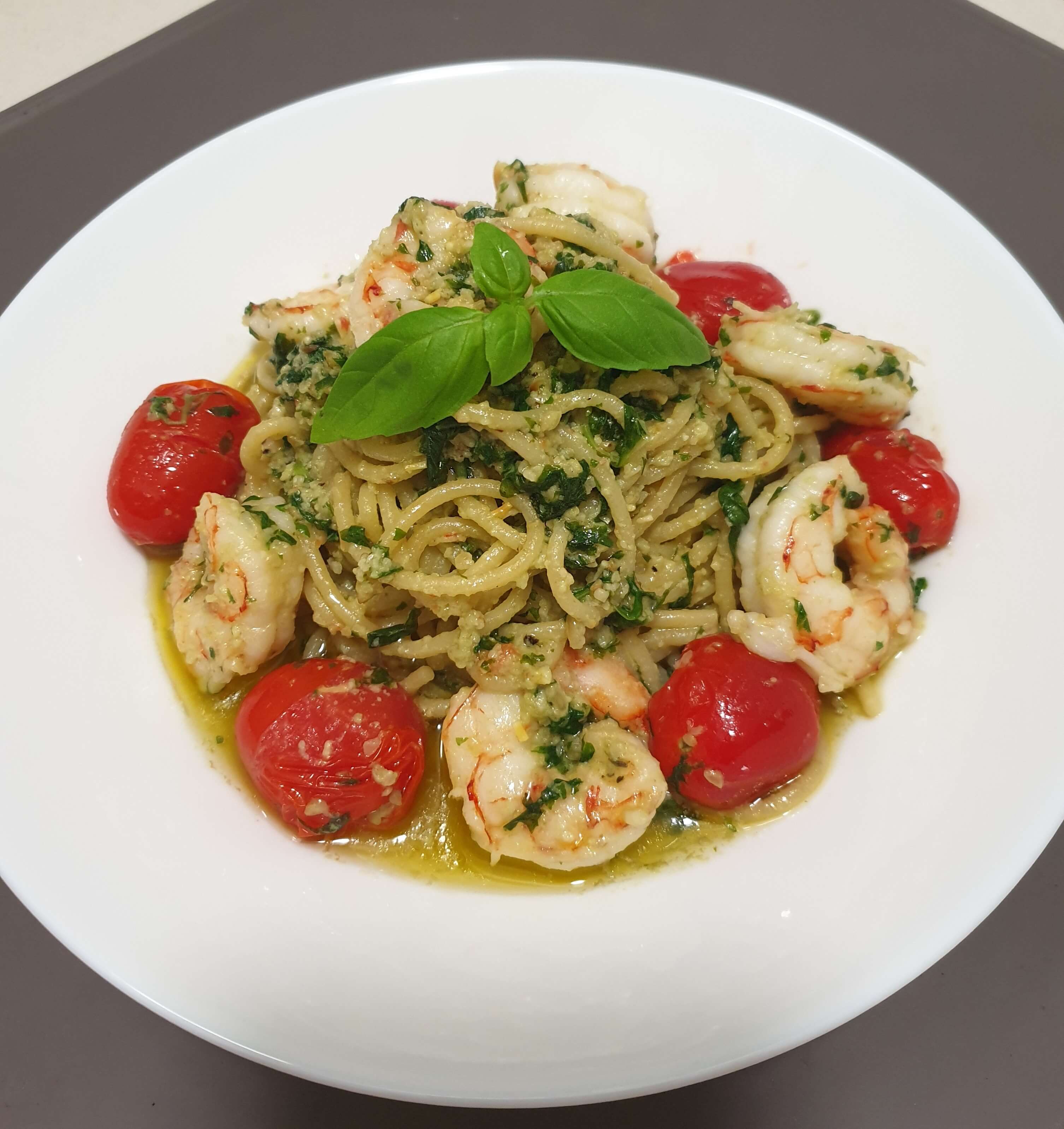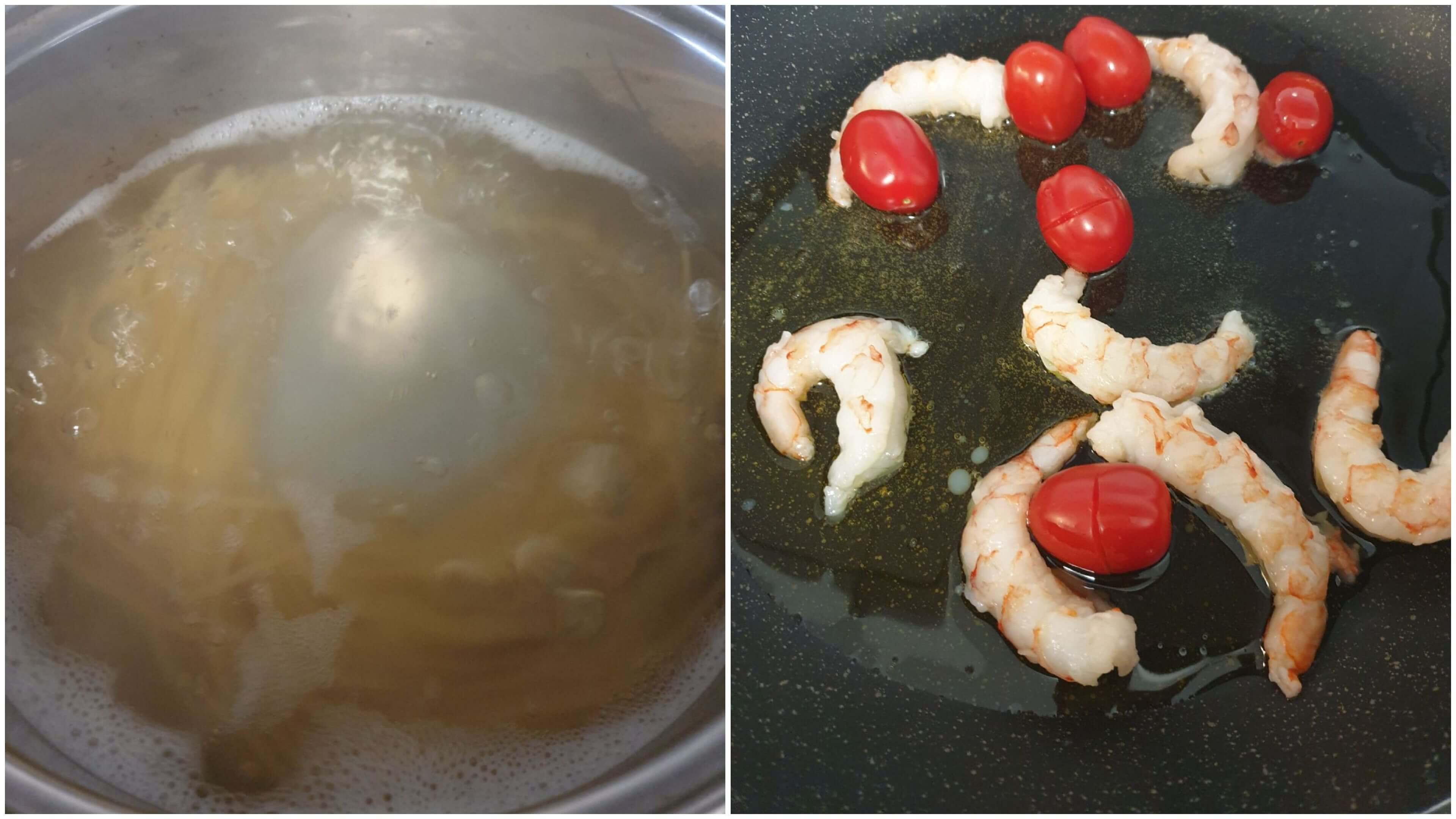 파스타 면, 새우, 방울토마토