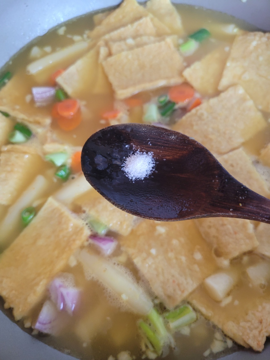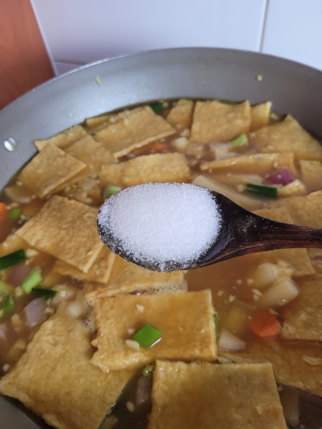 *설탕 넣고 국물 맛을 봤는데