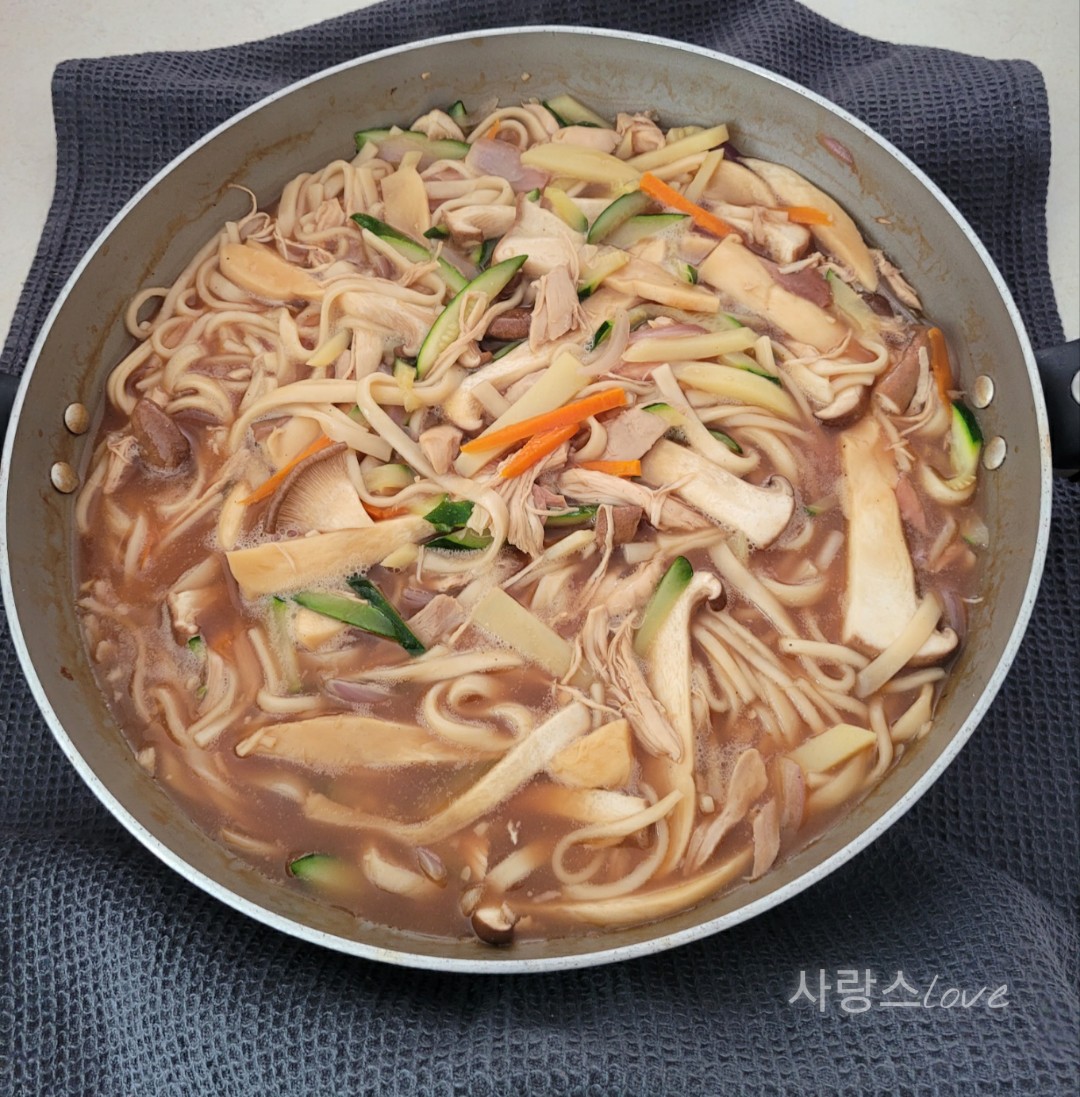 남은 육수로 닭칼국수 끓여 먹는 건