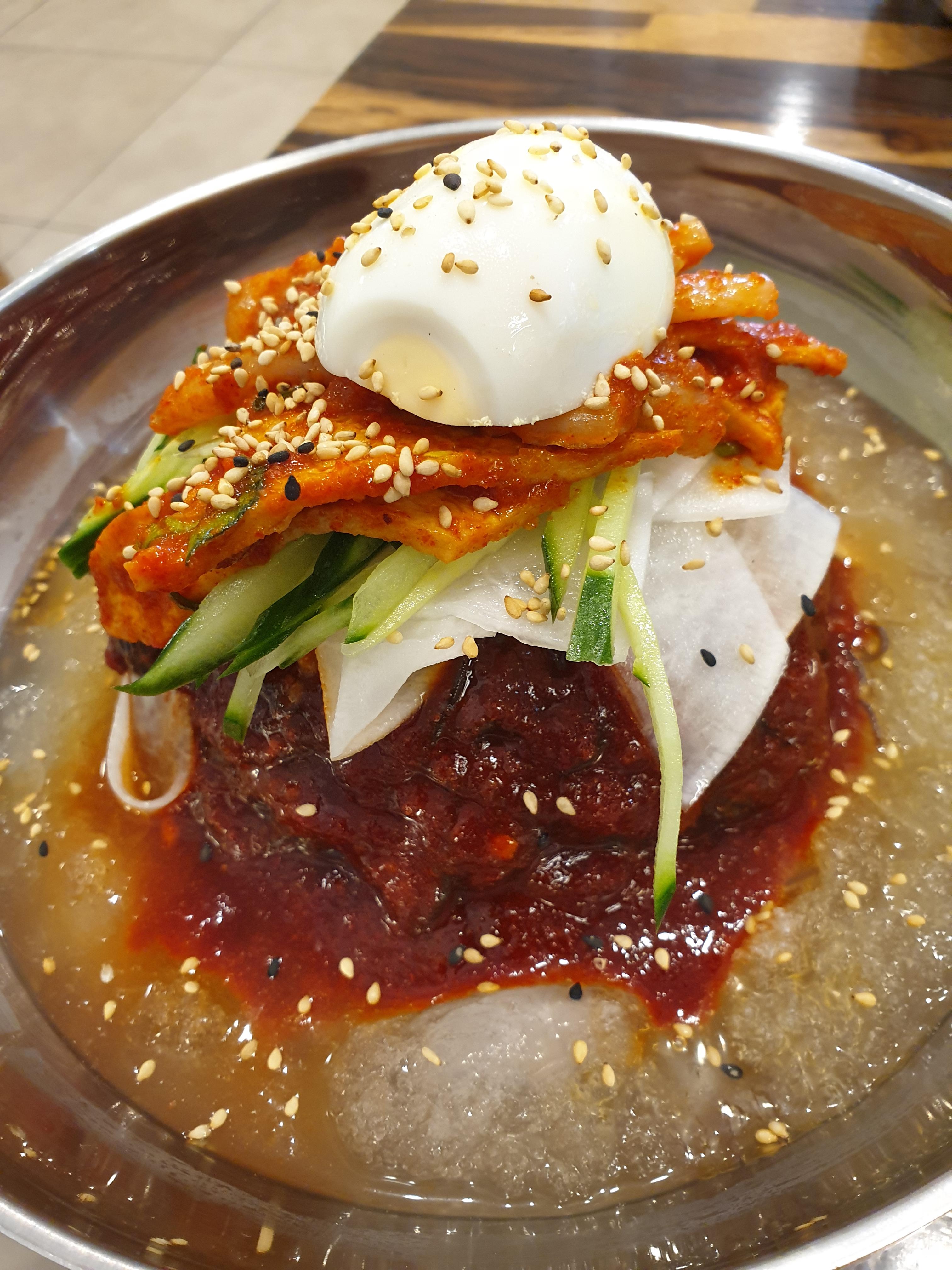 처음 시켜본 충무 비빔냉면이 맛있다며