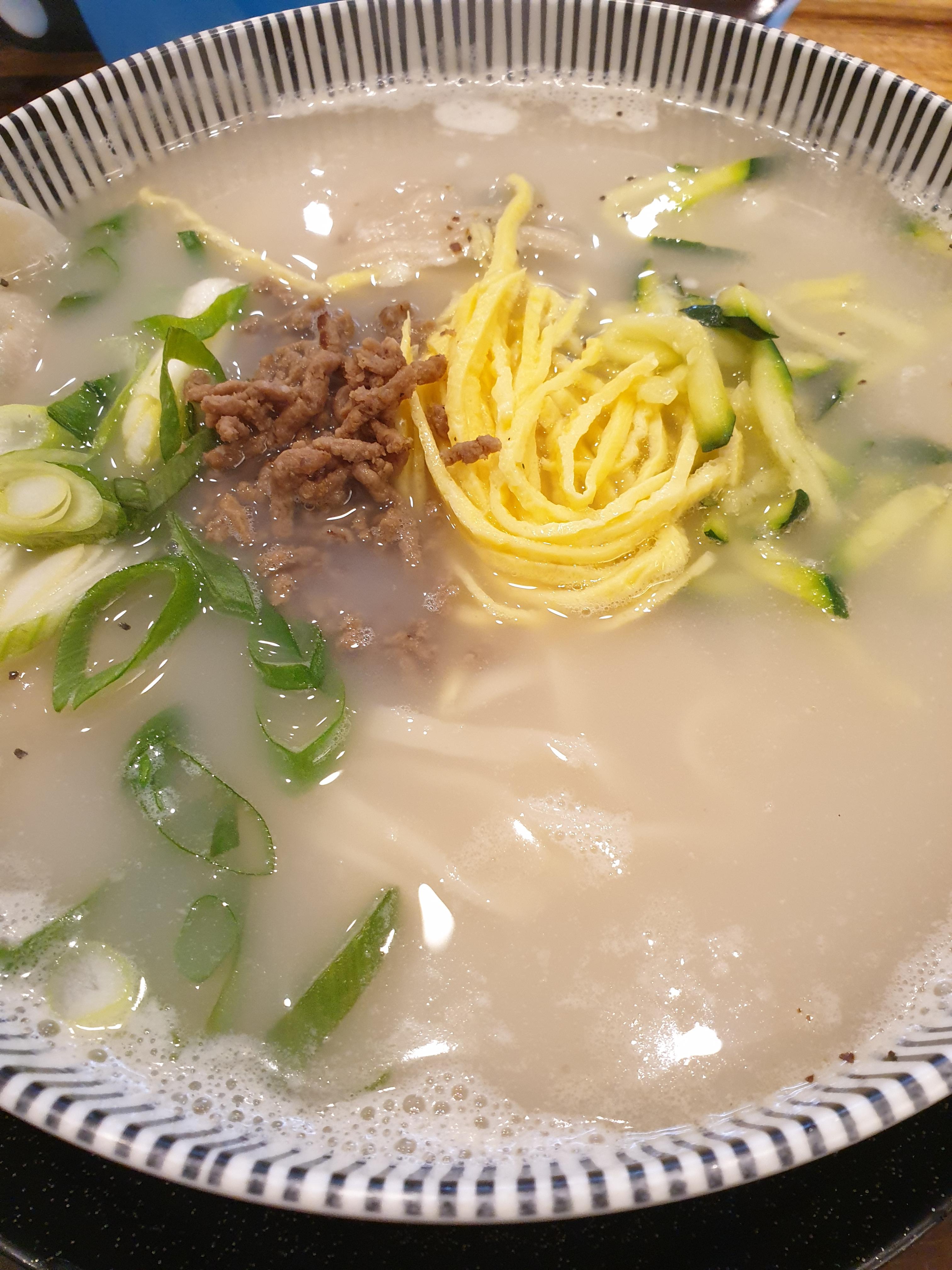 사골 베이스의 칼국수인데 자주 시켜 먹는 것 중에 하나예요