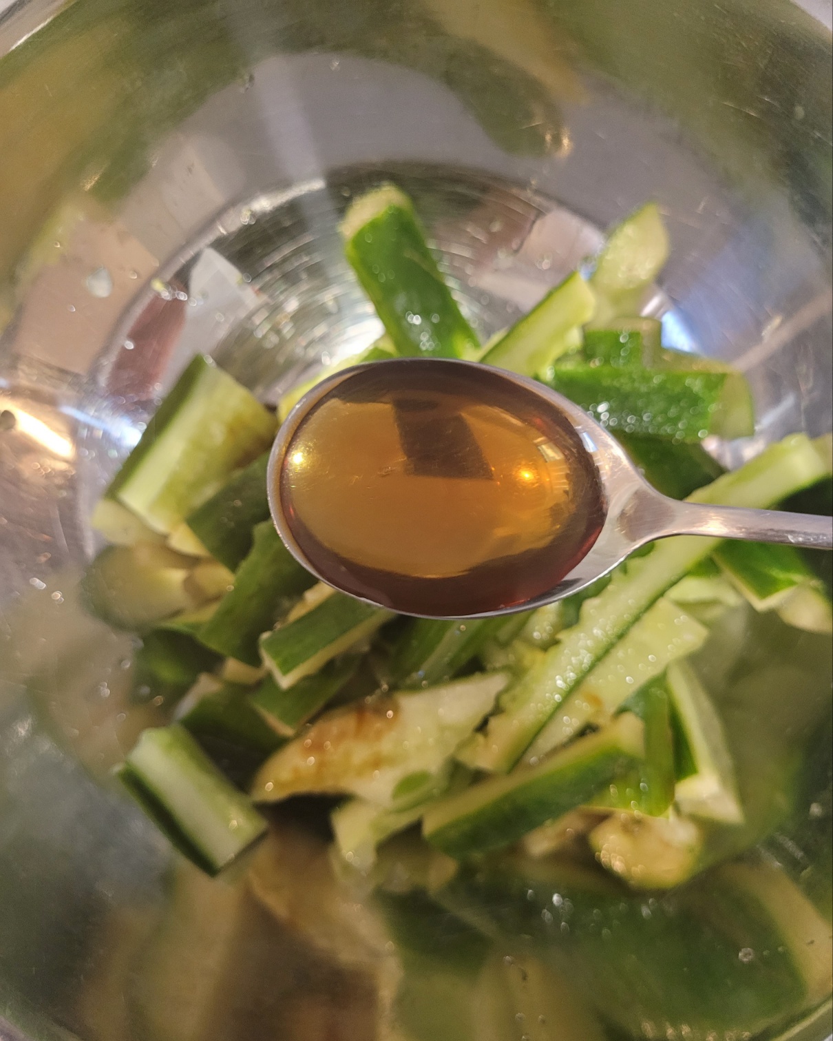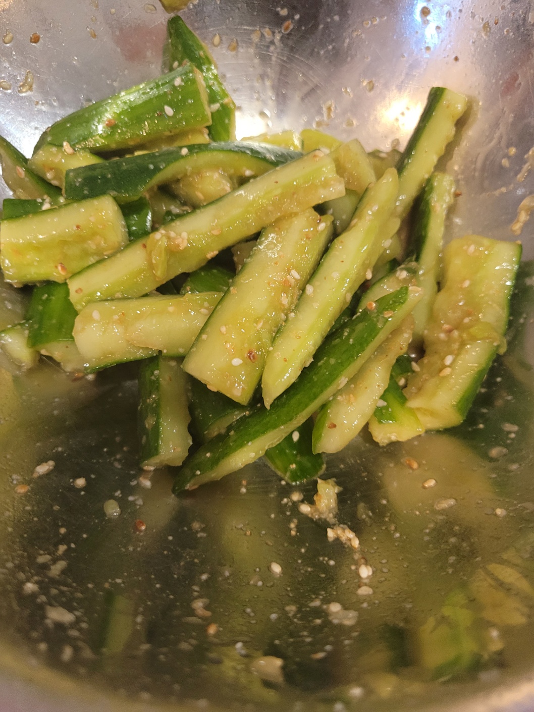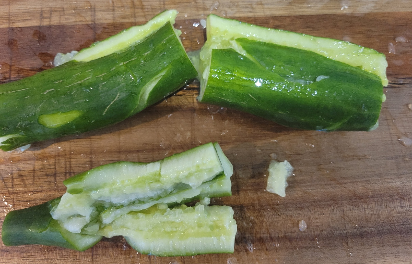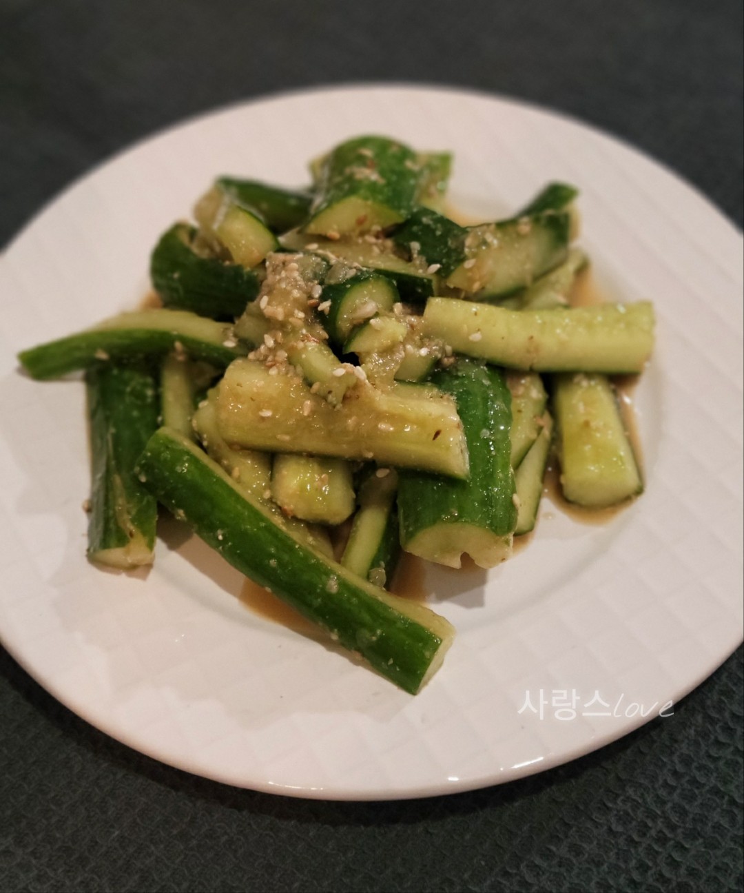 으깬 오이 사이로 간이 쏙 배어든 것 같아요.