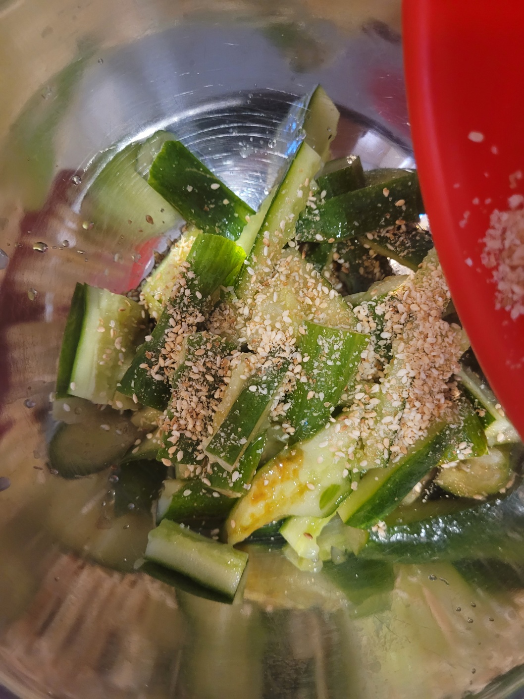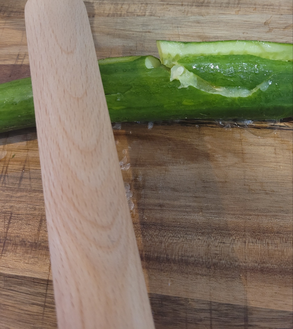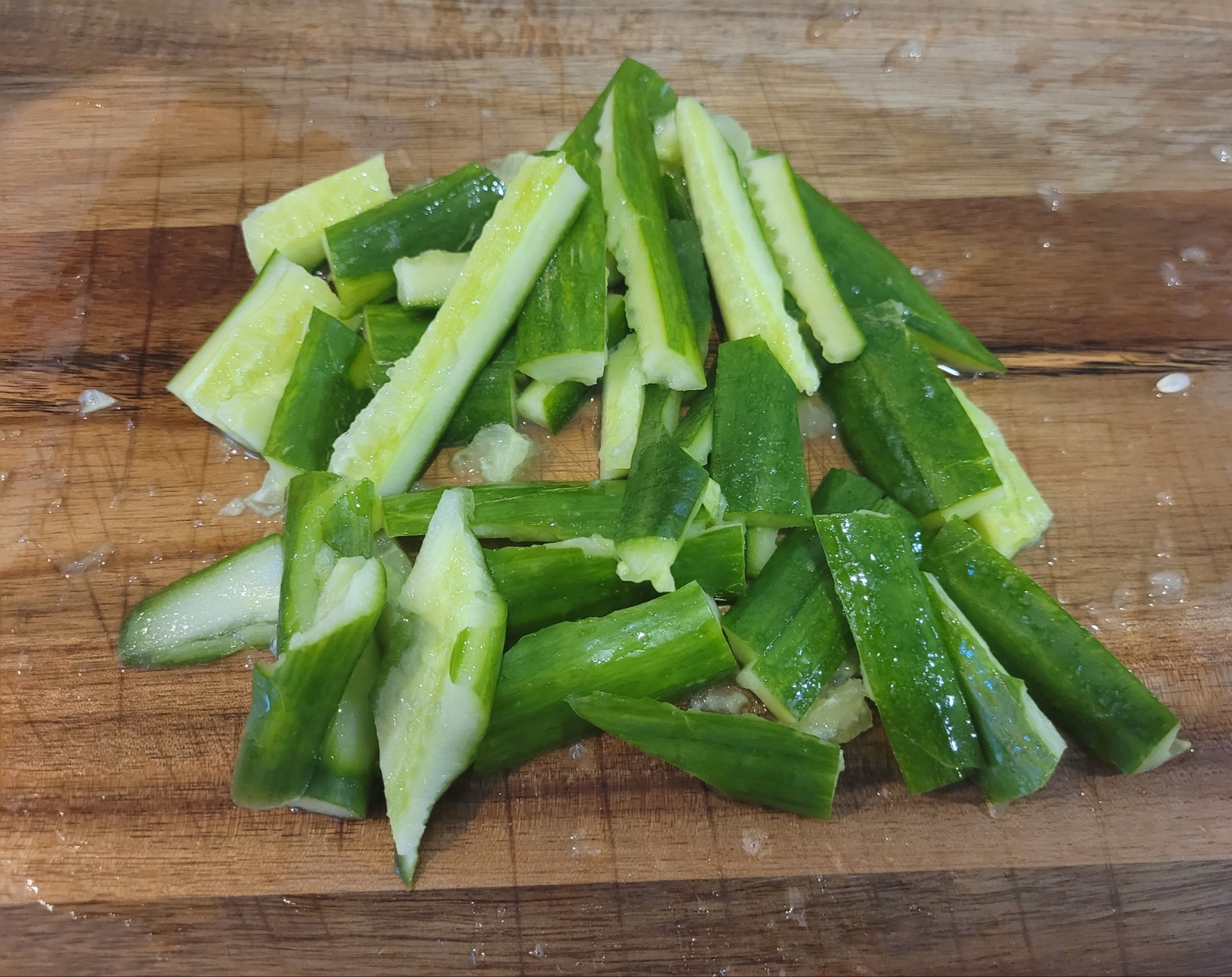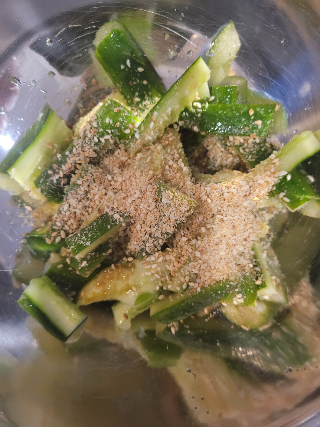 으깬 오이 사이로 간이 쏙 배어든 것 같아요.