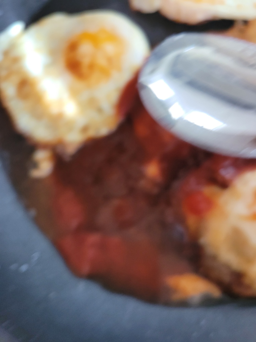 밥 위에 양념 계란 후라이를 올리고