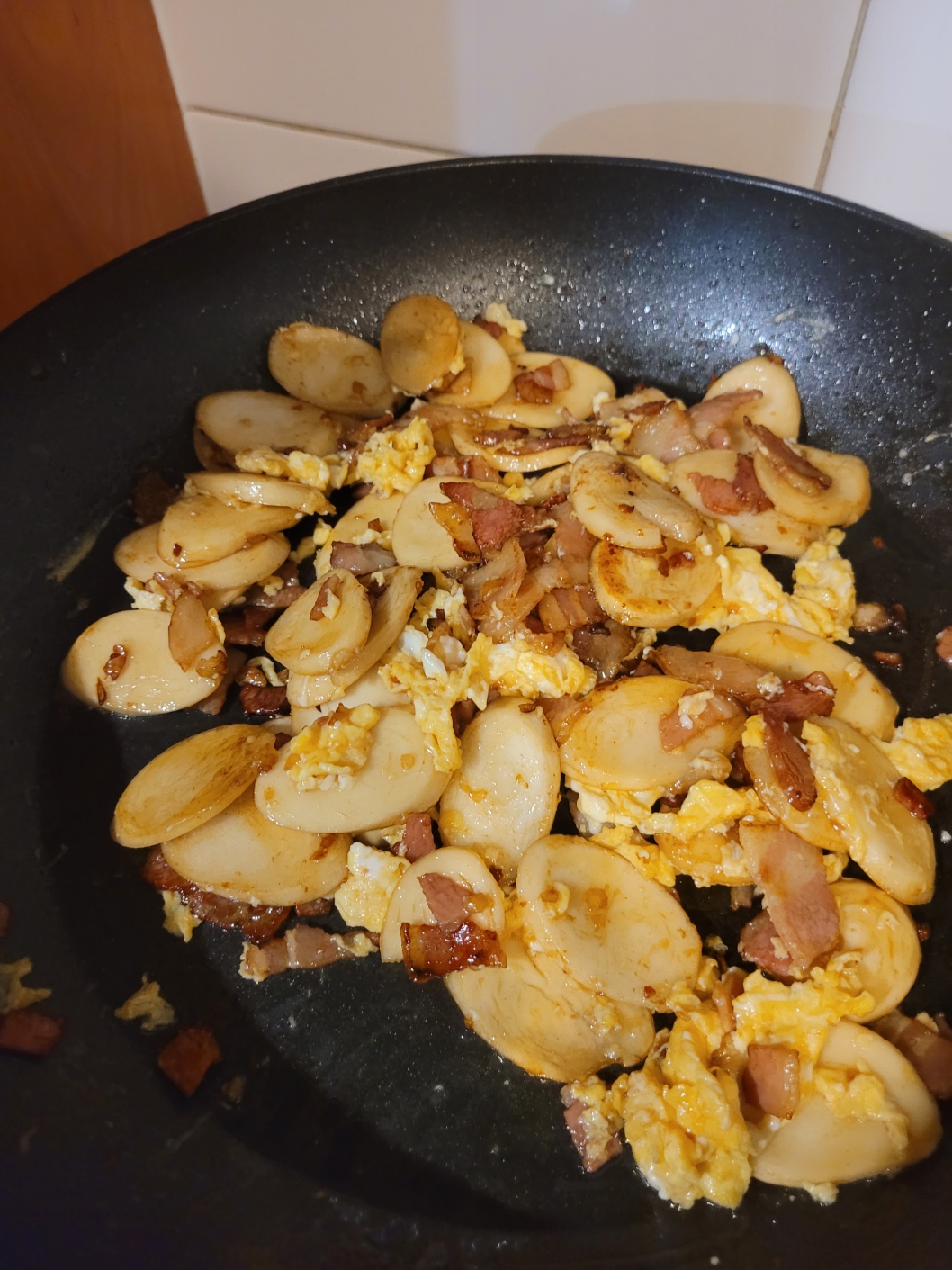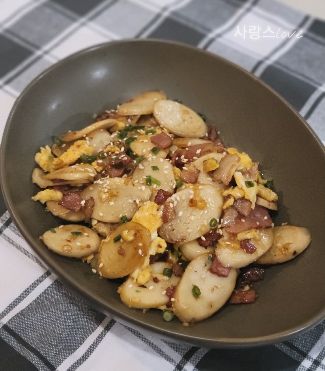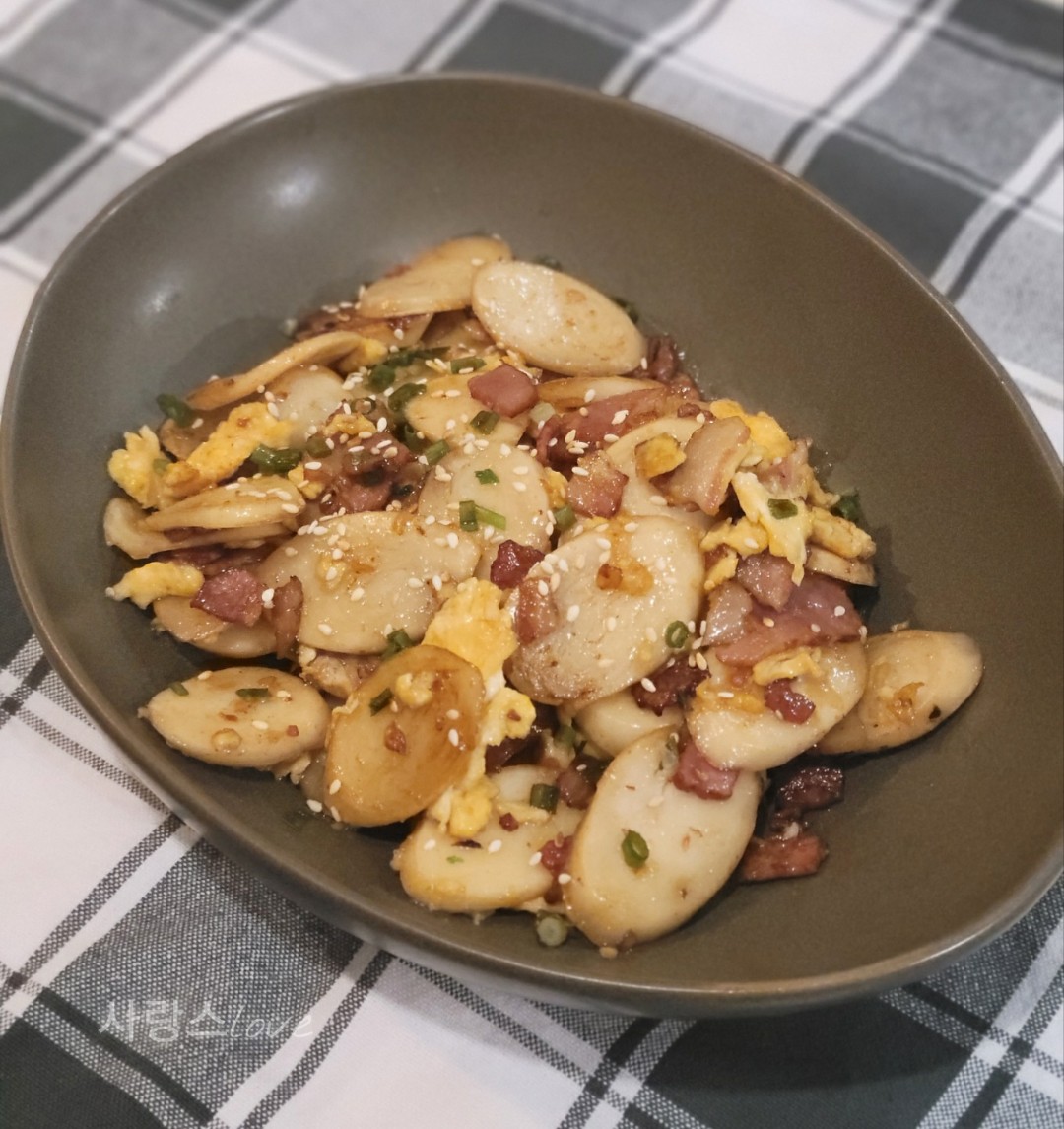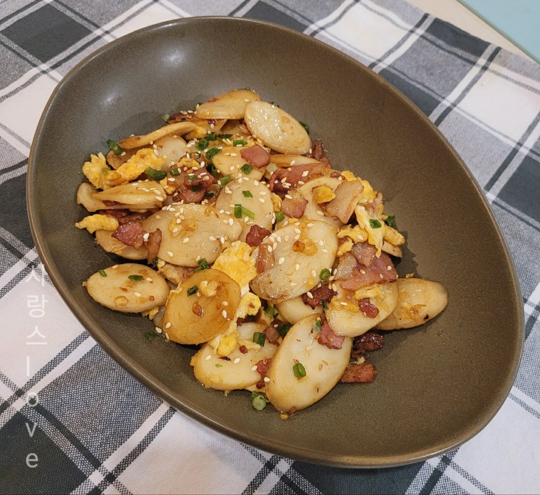 오늘은 베이컨, 떡, 계란을 이용해
