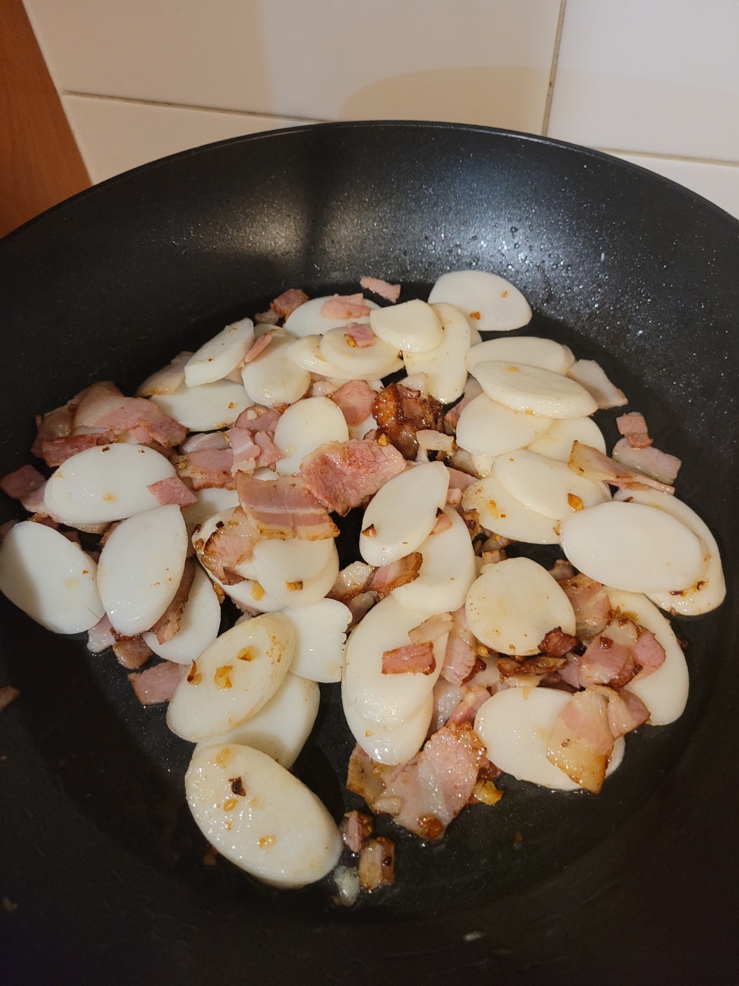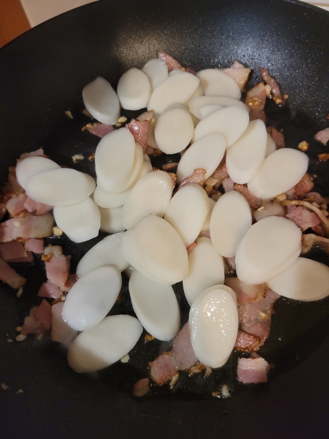 베이컨 떡볶음을 만들어서