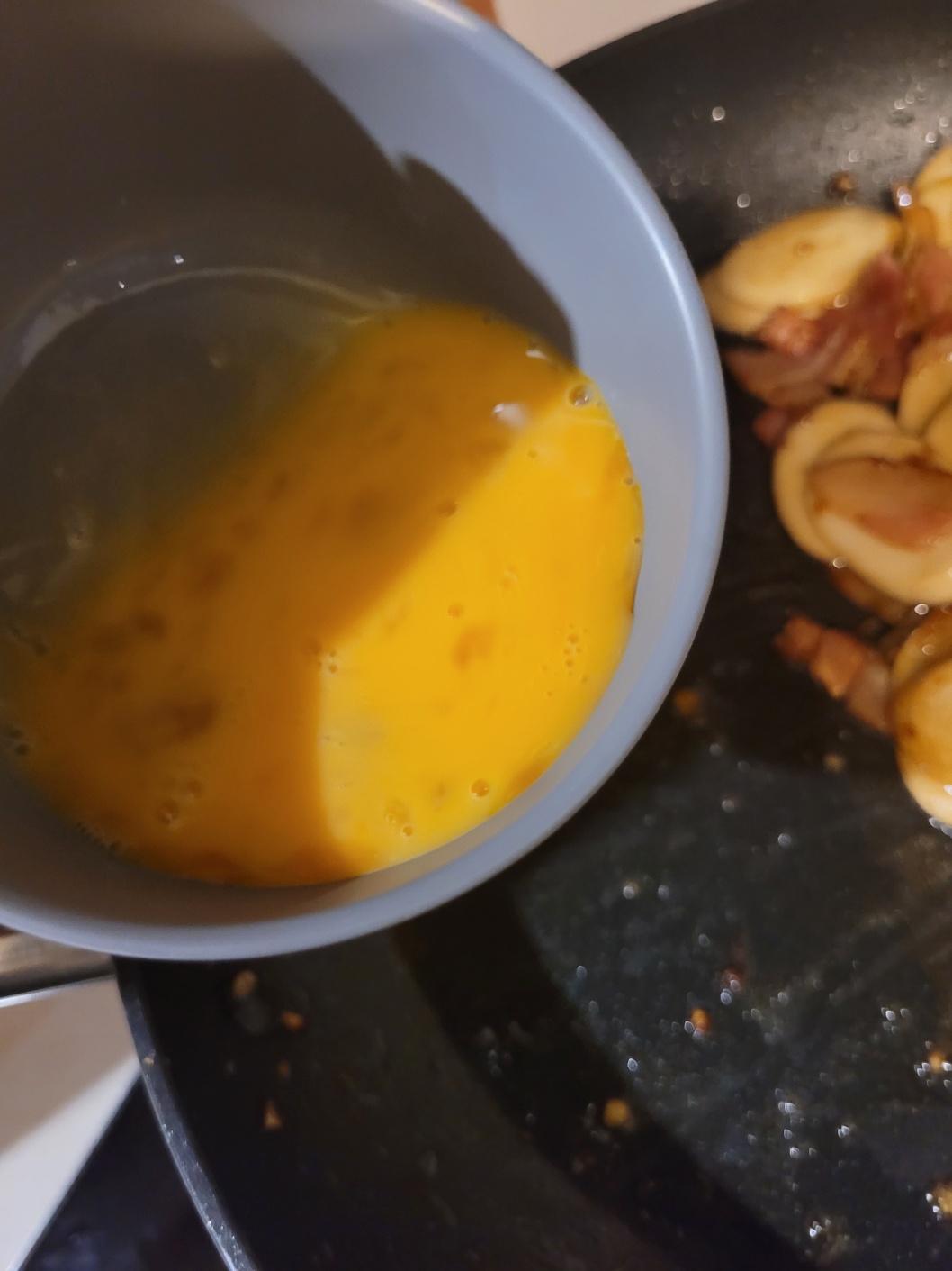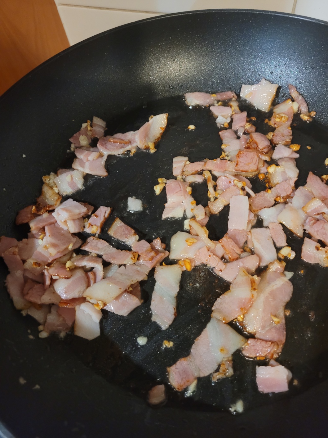 베이컨이 어느 정도 볶아지면