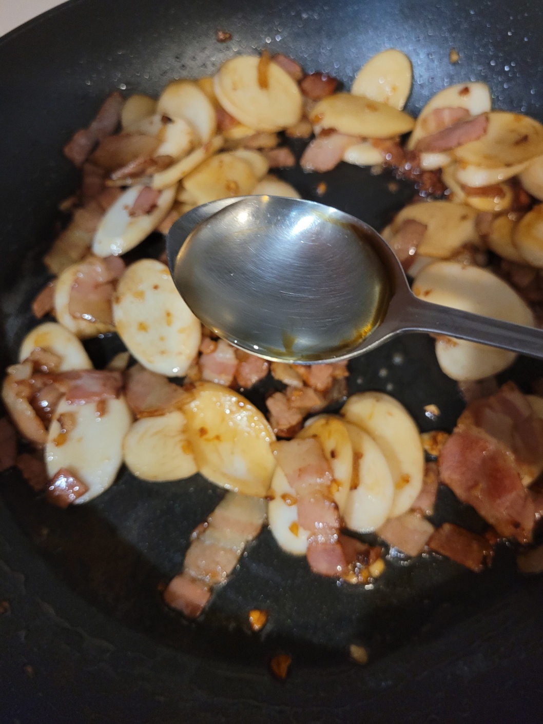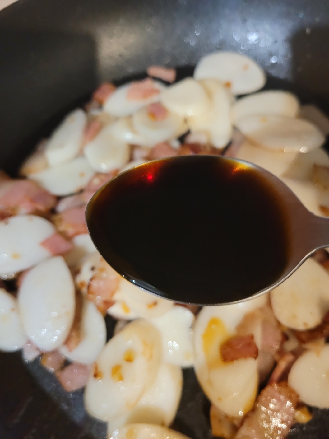 베이컨 양에 따라 간장을 조절해 주세요.