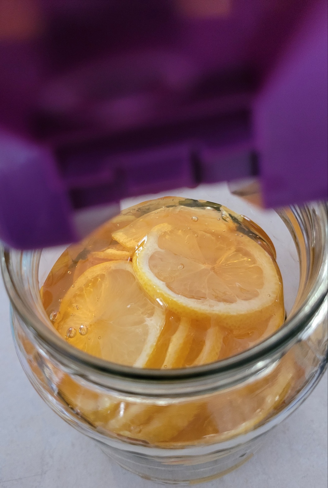 레몬을 5분 정도 담가주세요.