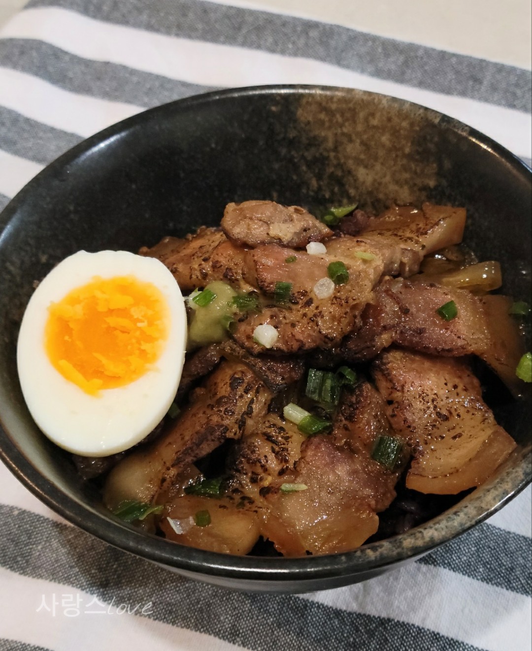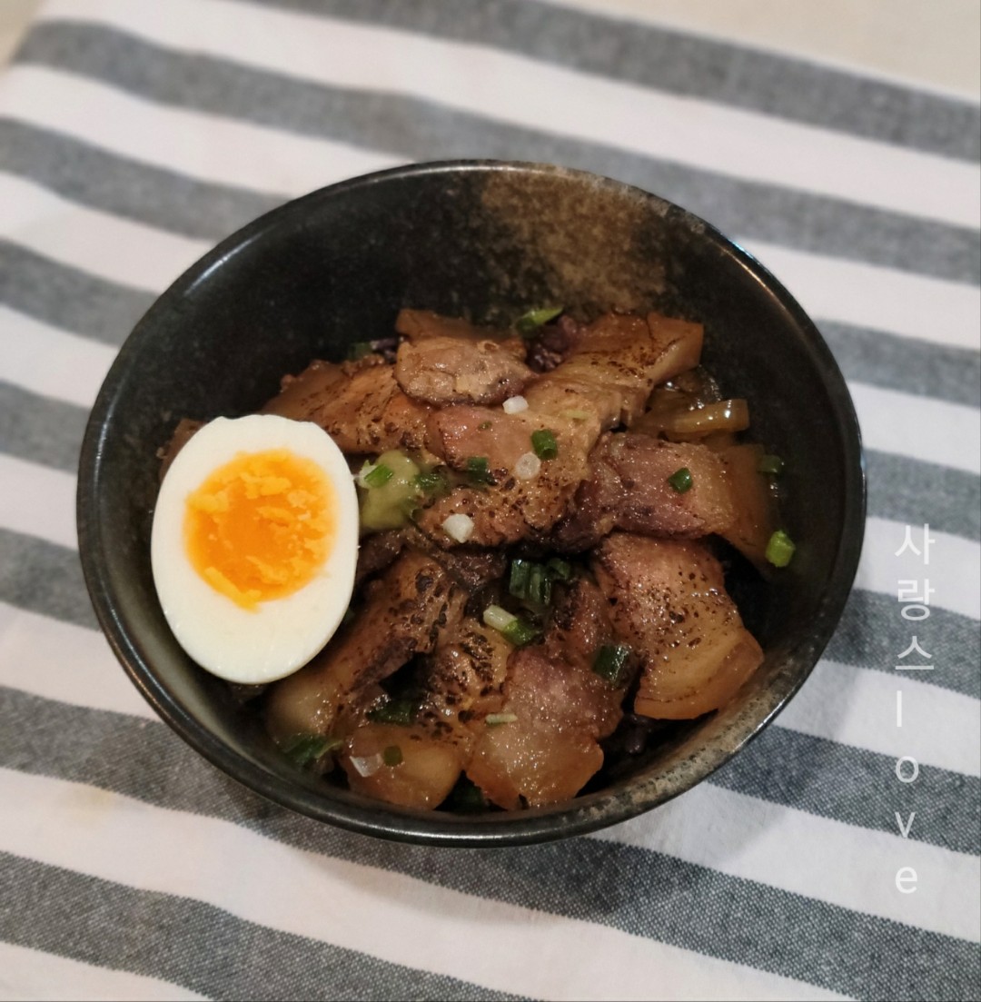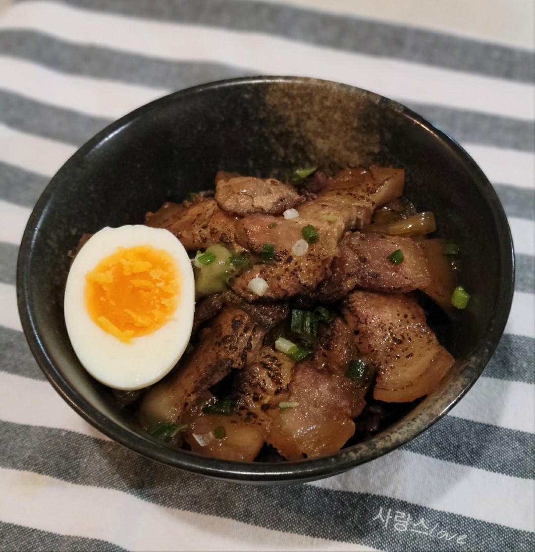 이번에는 삼겹살로 돈부리를 만들어보았어요.