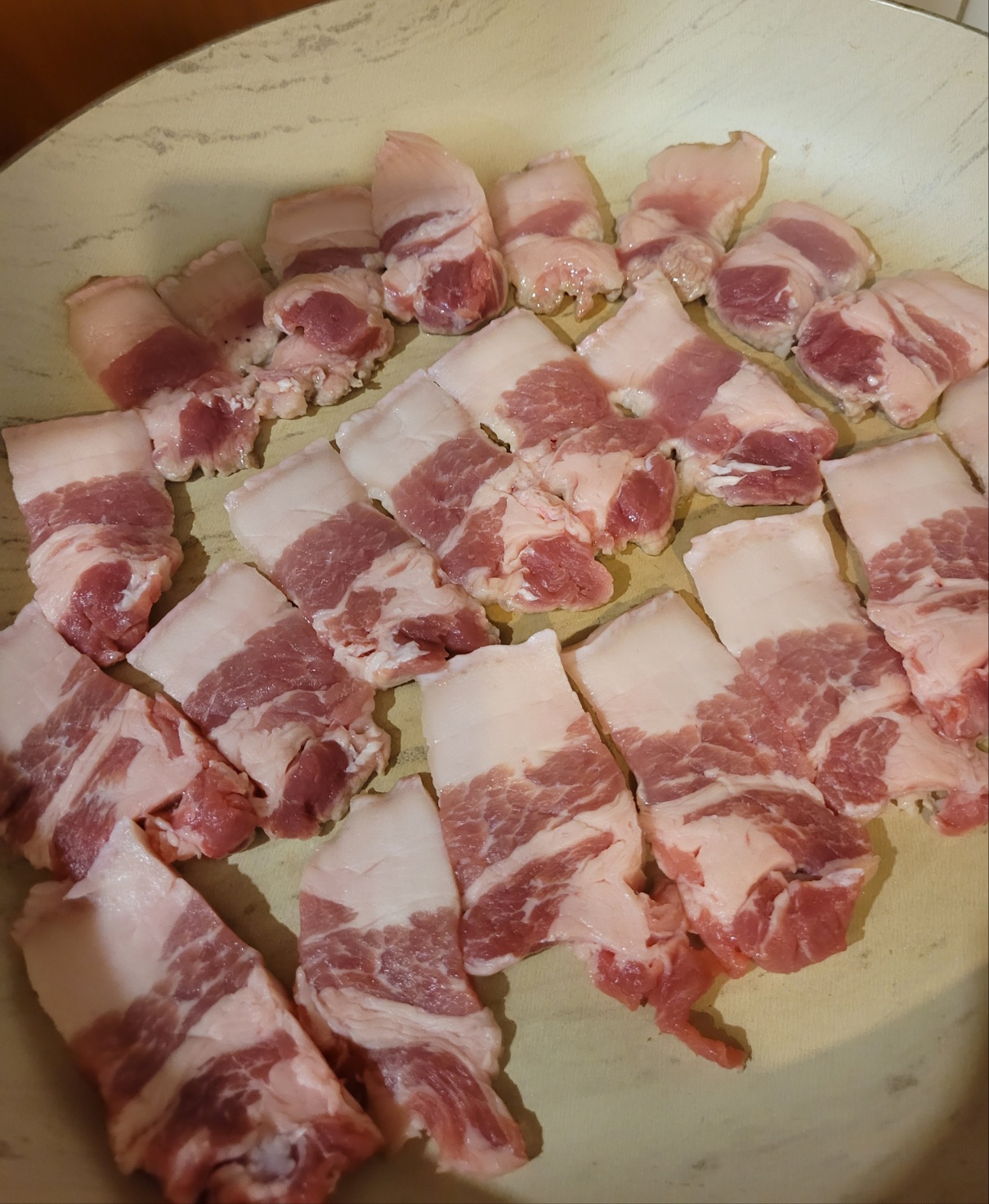 썰어놓은 삼겹살을