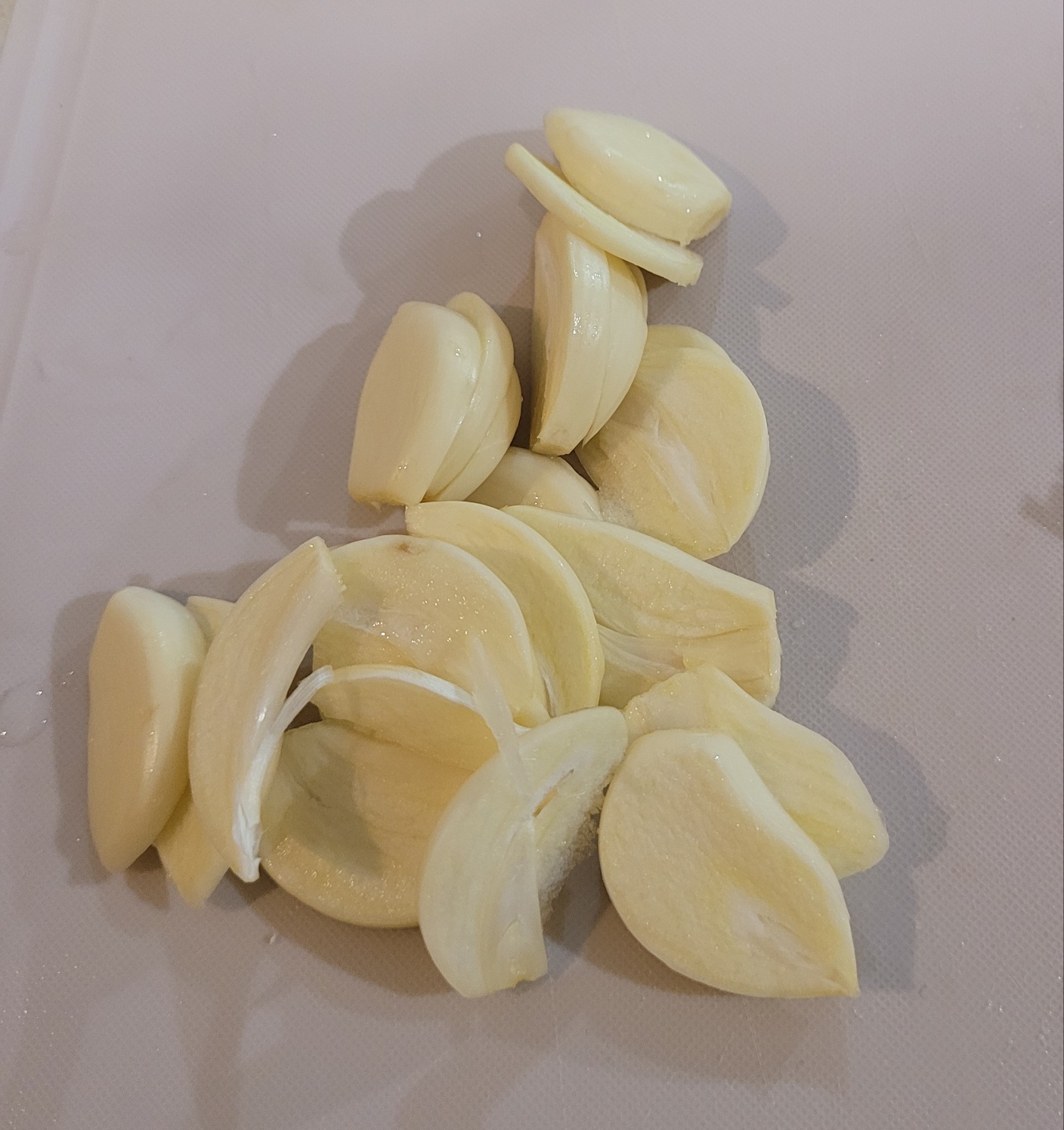 마늘도 5~6개 편 썰어 줍니다.